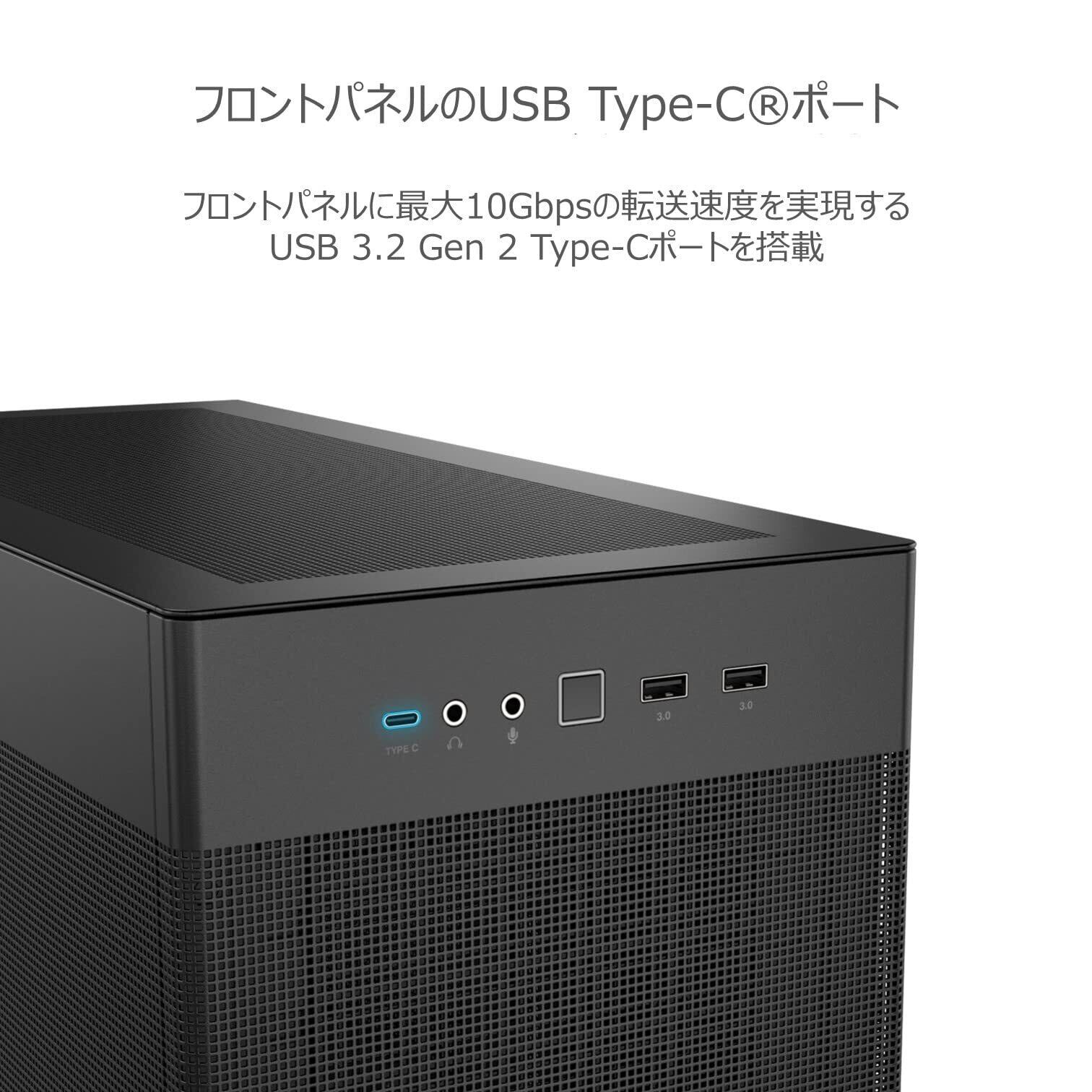 フロントI/Oポート : 1xヘッドフォン、1xマイク、1 x USB 3.2 Gen2 Type C