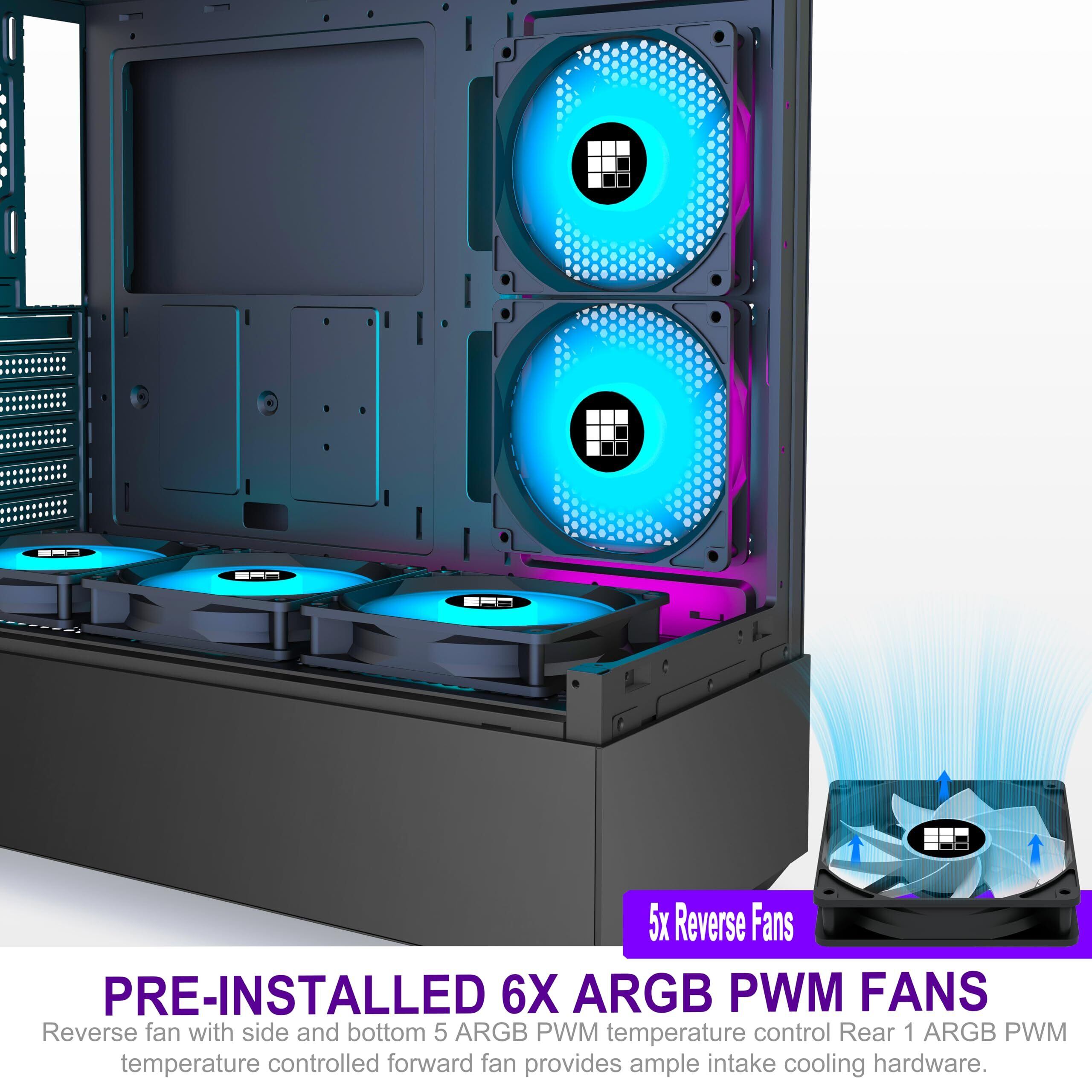 FOIFKIN PCケース - プリインストール6 PWM ARGBファン、ATXミッドタワーゲーミングケース、F1 (ブラック, F1)