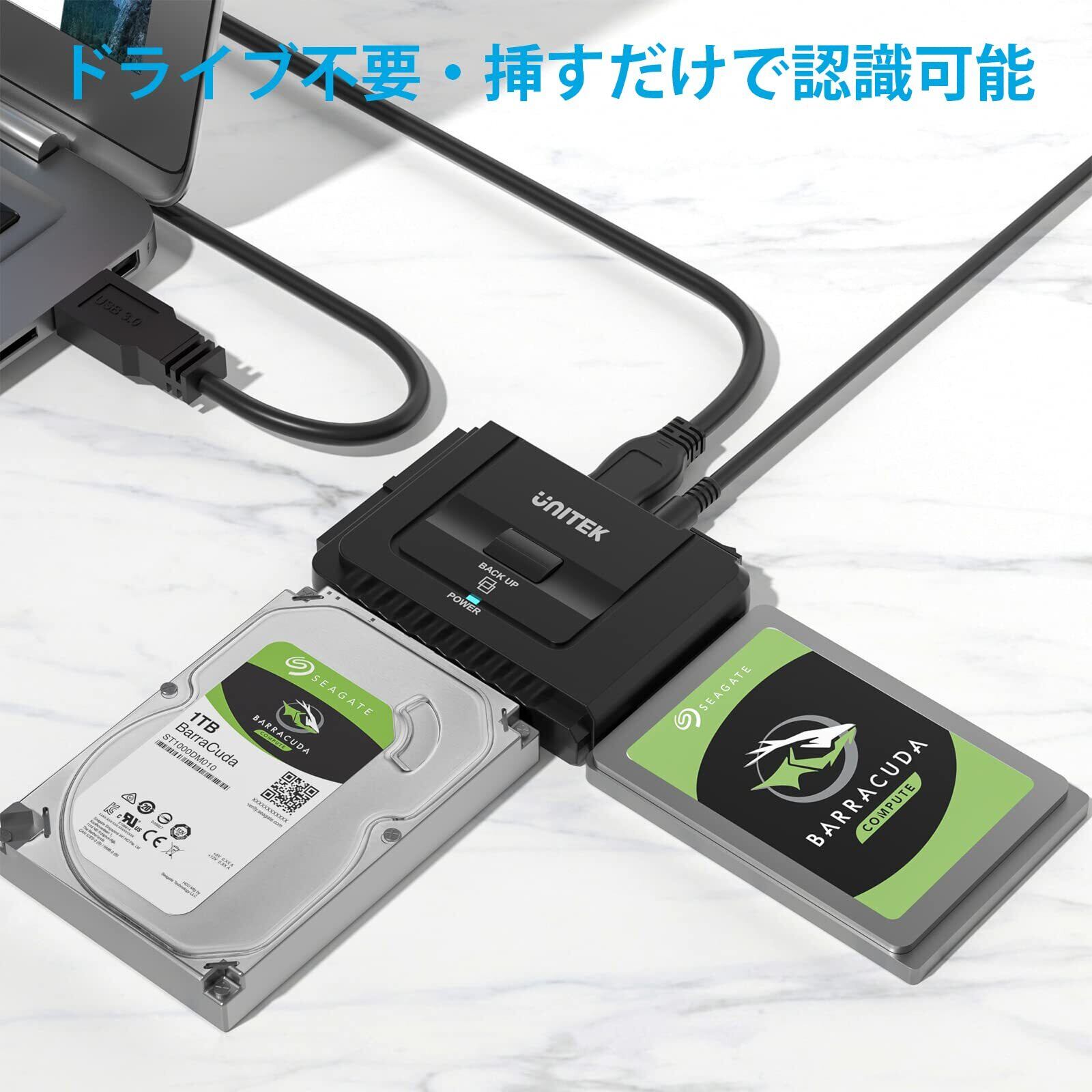「『Unitek USB-A IDE SATA 両方対応 USB3.0 ドライブ交換アダプター』は、幅広いデータ転送ニーズに応える高性能なアダプターです!USB3.0接続で、最大5Gbpsの超高速データ転送を実現し、大容量データの保存や移行が快適に行えます。」
