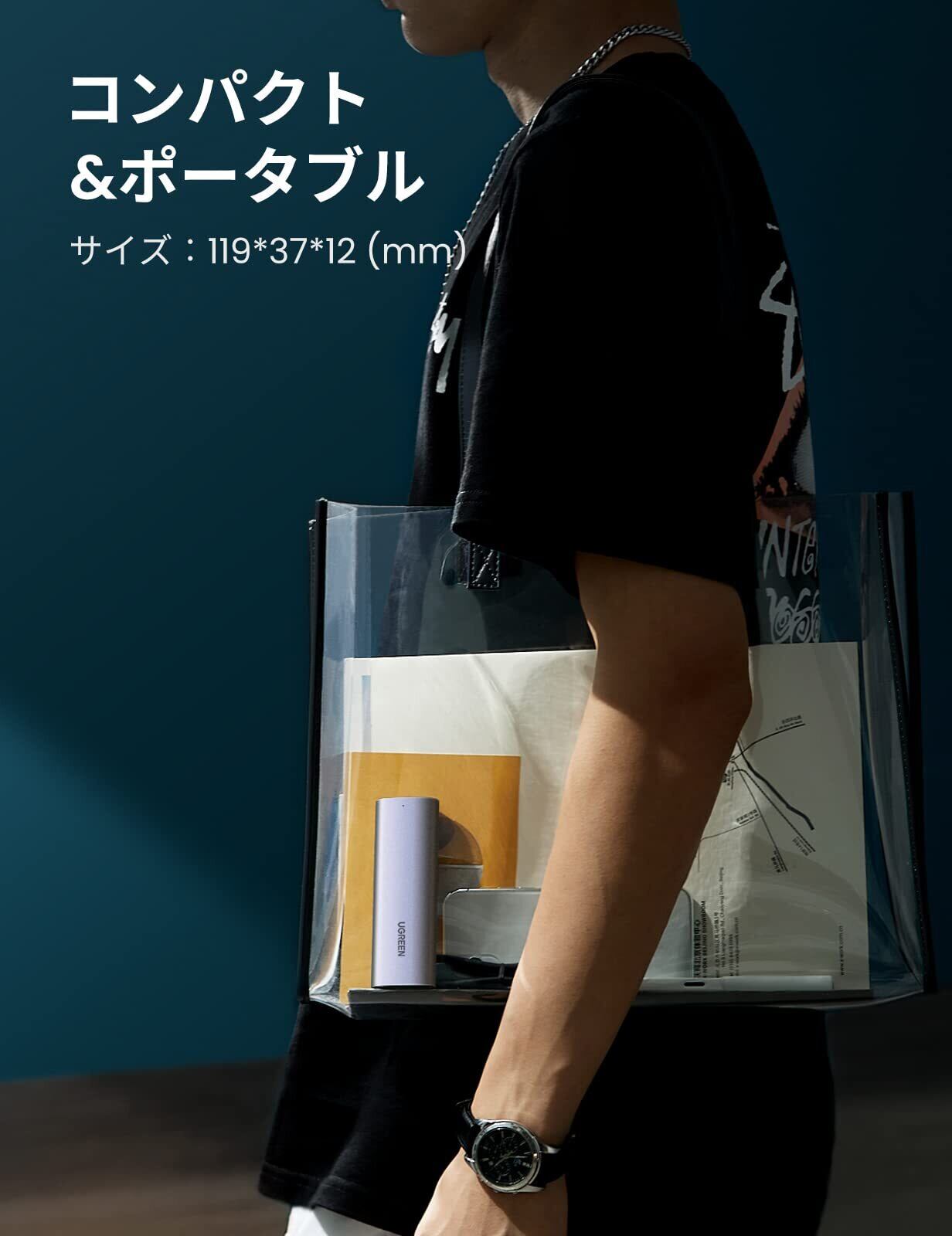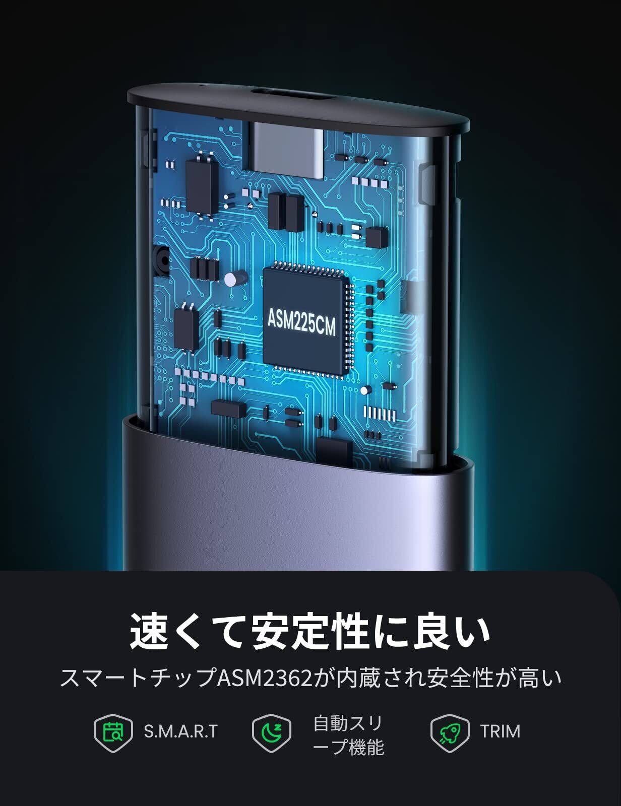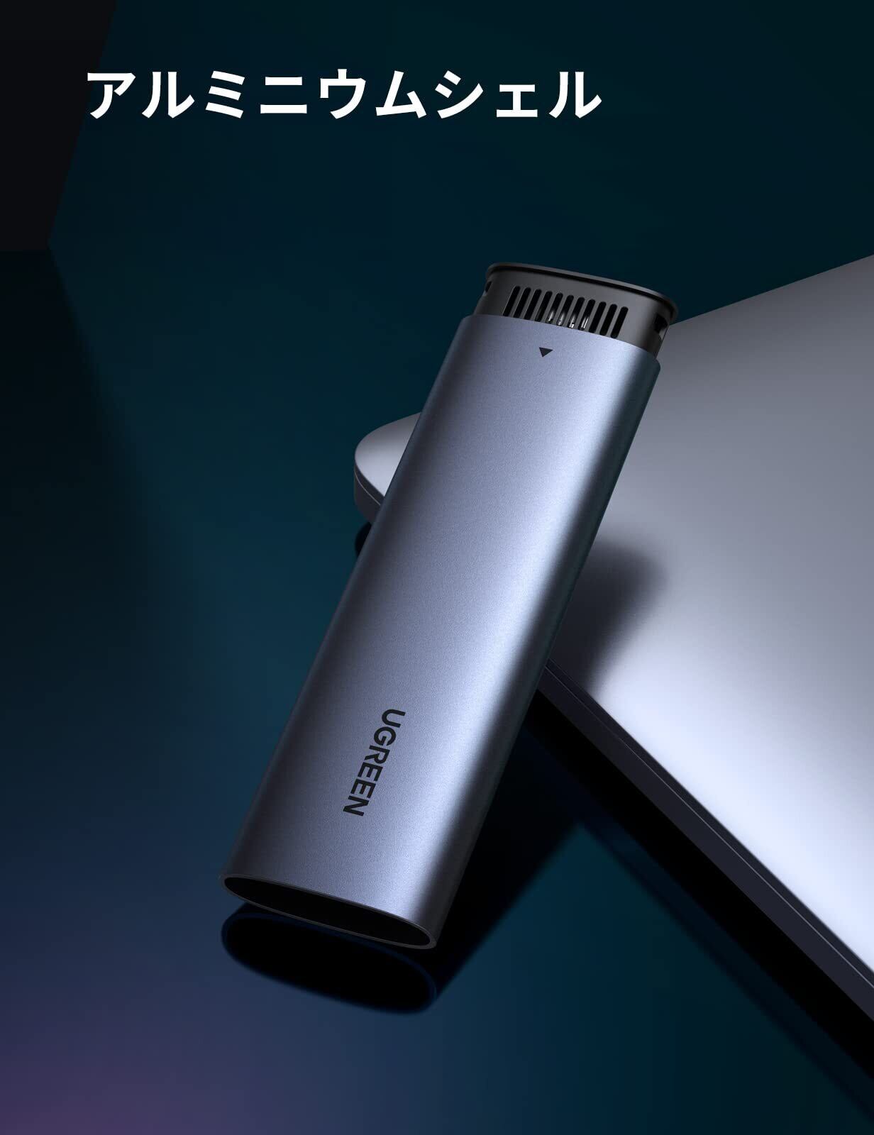 「『UGREEN M.2 SSD ケース』は、高速なデータ転送と優れたユーザビリティを兼ね備えた外付けケースです!USB3.1 Gen 2およびThunderbolt 3に対応し、最大10Gbpsの転送速度を実現。データのバックアップや移行が今までになくスムーズに行えます。」
