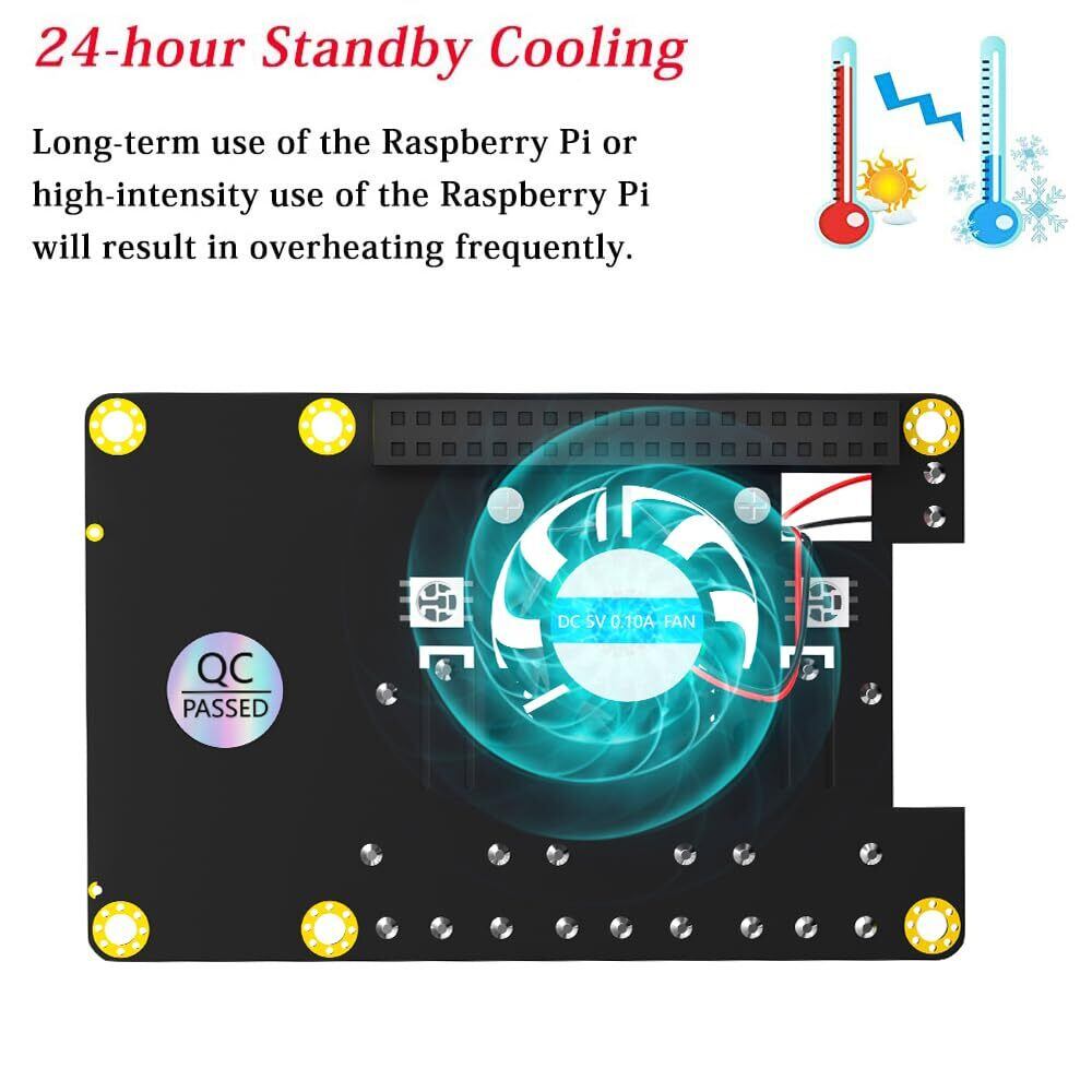 「このモジュールは、デュアル冷却ファンによってRaspberry Piの熱を効率的に管理します。これにより、負荷がかかるプロジェクトでも安定した動作を維持し、長時間の使用に耐えられます!」