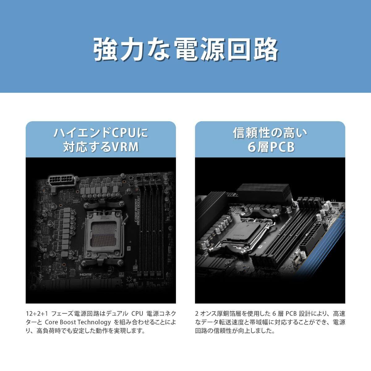 「信頼性の高い6層PCB設計を採用しており、高周波数のDDR5-7200メモリにも対応。これにより、オーバークロック時でも安定した動作が保証され、ゲーミングやクリエイティブな作業に最適な環境を提供します。」