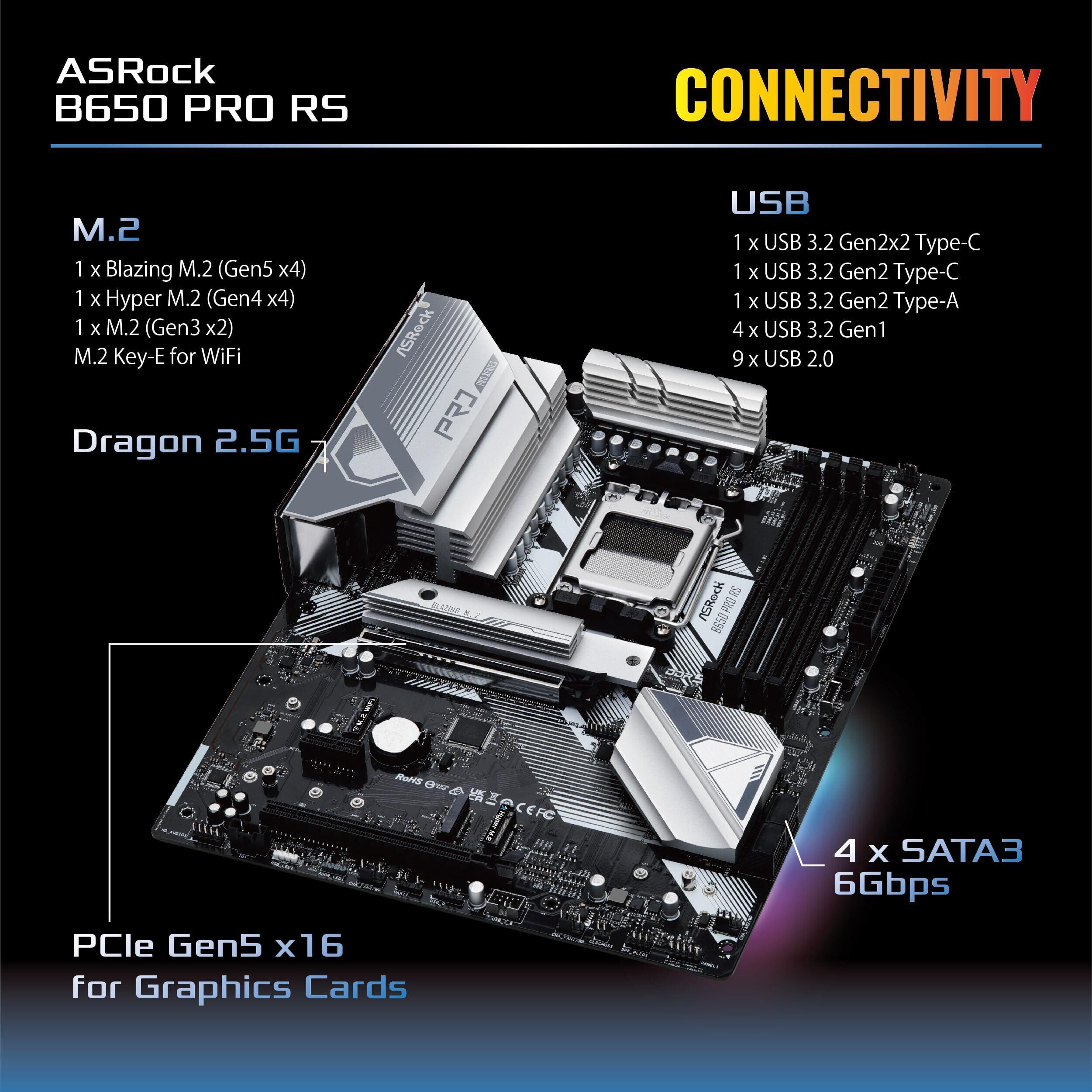 ASRock マザーボード B650 Pro RS AMD Ryzen 7000 シリーズ CPU対応 (Soket AM5) B650E ATX マザーボード 【国内正規代理店品】