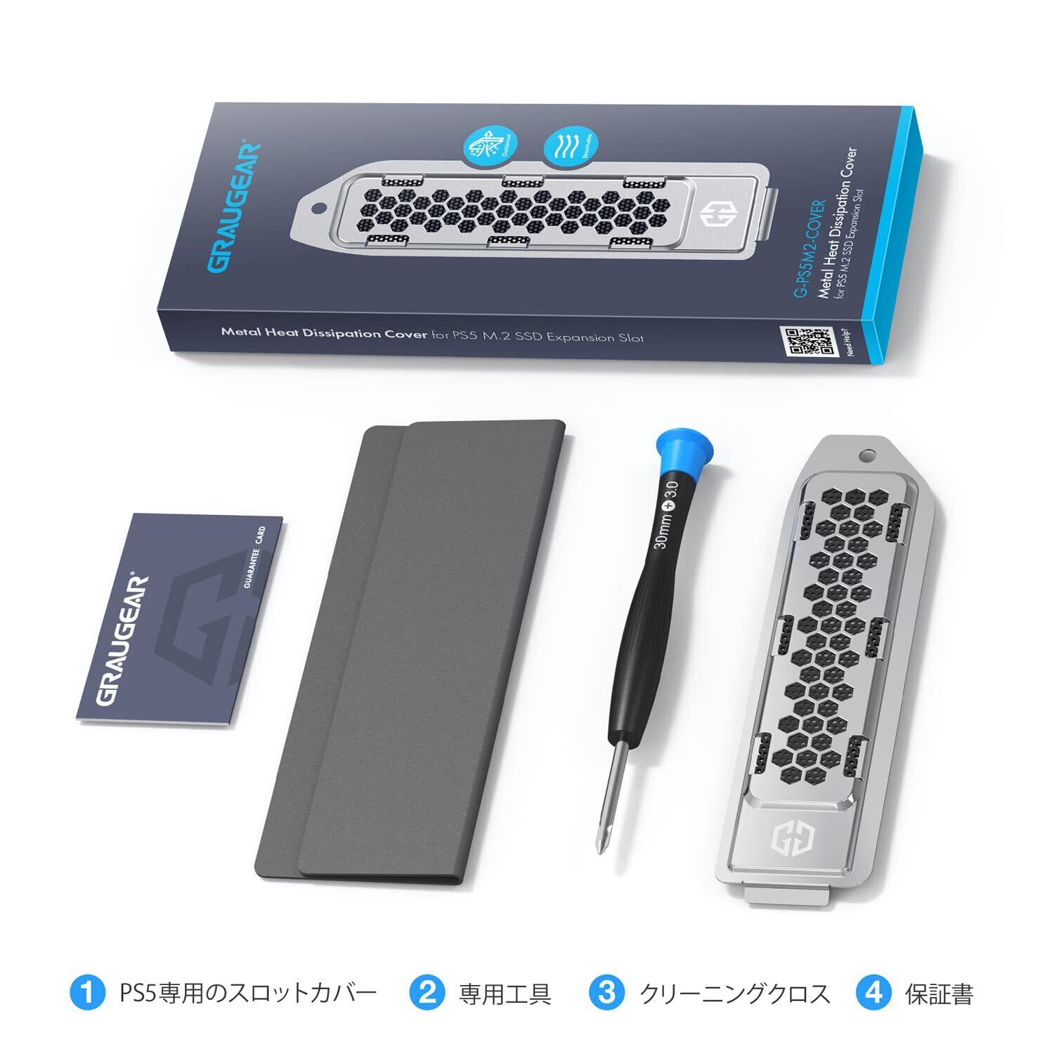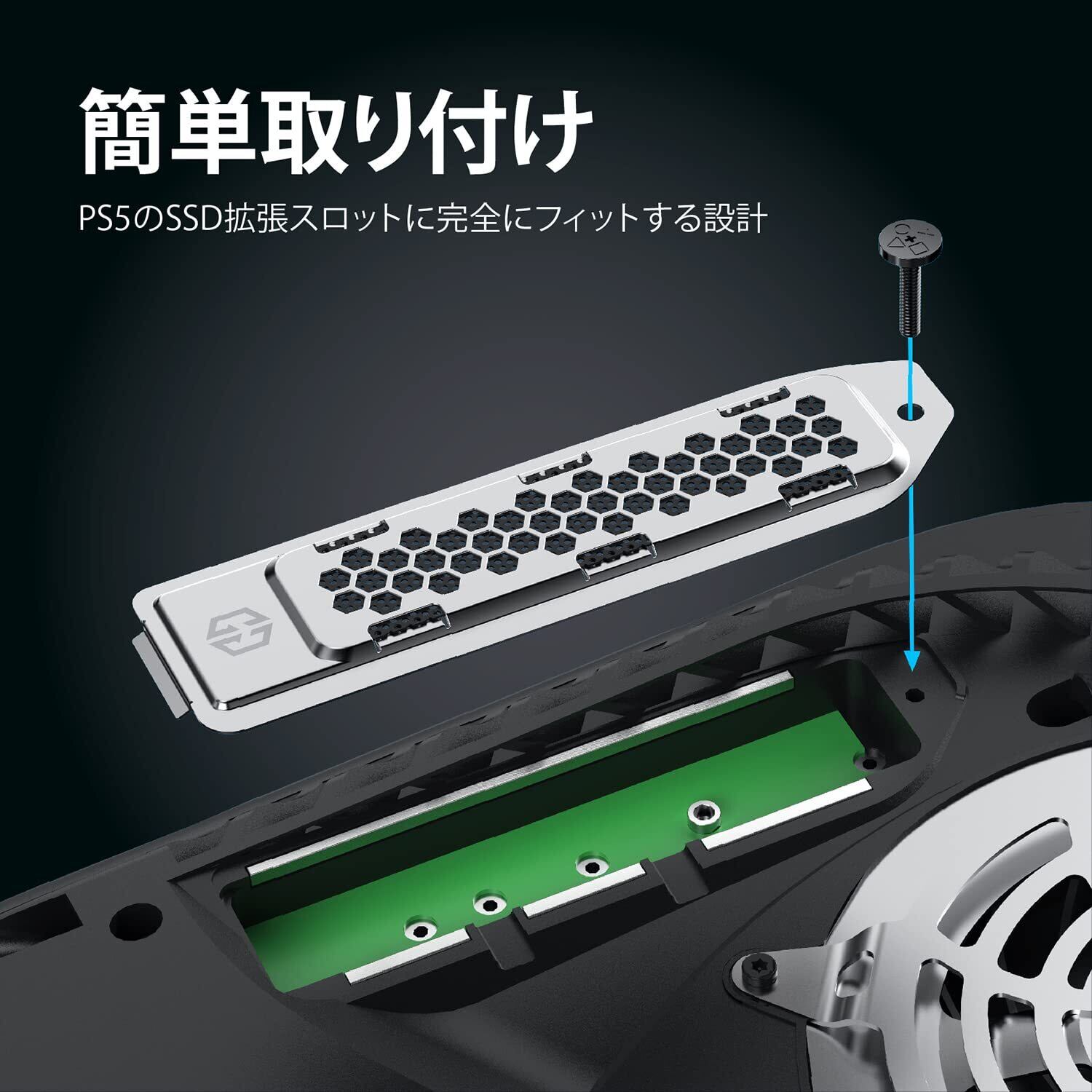GRAUGEAR PS5専用のSSDカバーとヒートシンクを一体化したデザイン、PS5対応の拡張スロットカバーと交換するタイプのヒートシンクについては、ダストフィルター、取り付け簡単、銀色(初代PS5)