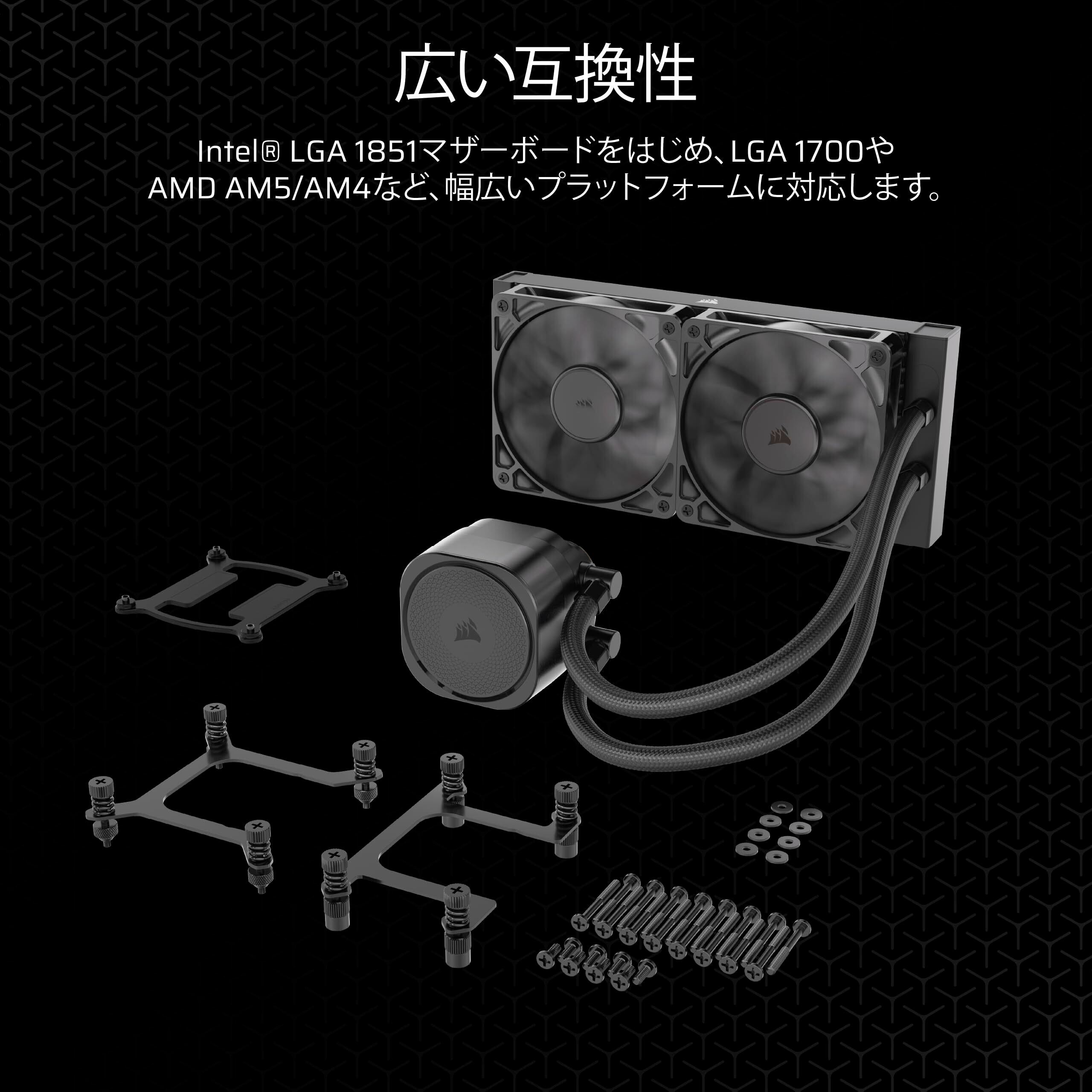 CORSAIR NAUTILUS -ノーチラス- 240 RS 水冷式CPUクーラーは、シンプルで使いやすい一体型水冷CPUクーラーです。Intelの次世代CPUソケットのLGA 1851にも対応し、幅広いシステムに導入できます。専用コントローラーを使わないデザインのため、マザーボードに接続するだけで利用可能。静圧重視のRS120ファンを付属しており、静音かつ高いパフォーマンスを発揮します。ファンはデイジーチェーン接続に対応しており、ケーブルが散乱する心配もありません。別売のiCUEコントローラーとアダプターを利用すれば、より高度なコントロールも可能です。 販売元、出荷元が「」のCorsair 製品に関しては全て正規品となっております。に関するお問い合わせ先については、外箱貼付の代理店シールをご確認ください 代理店シールが貼付されていない場合は、Corsair正規代理店株式会社アスクまでお問い合わせください。