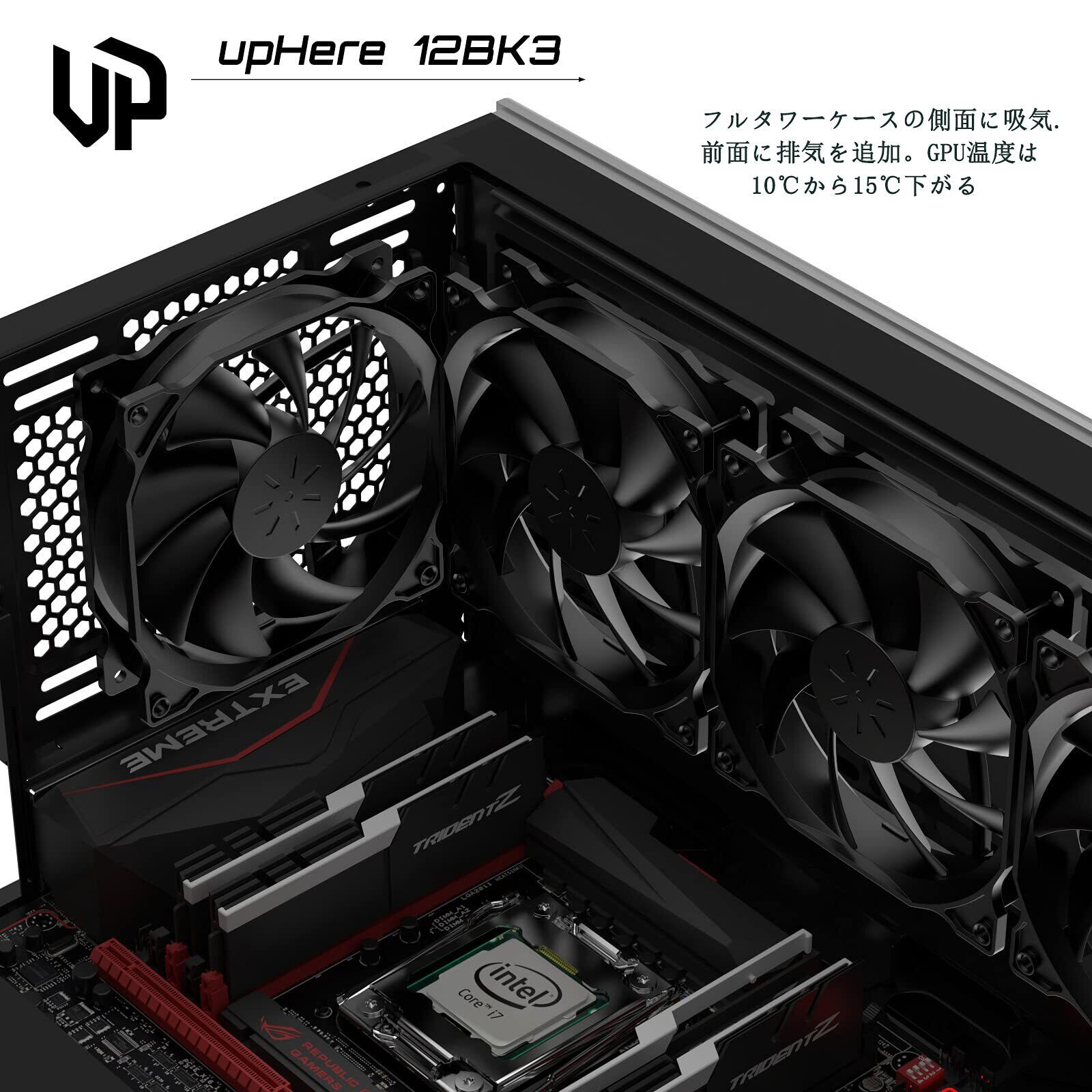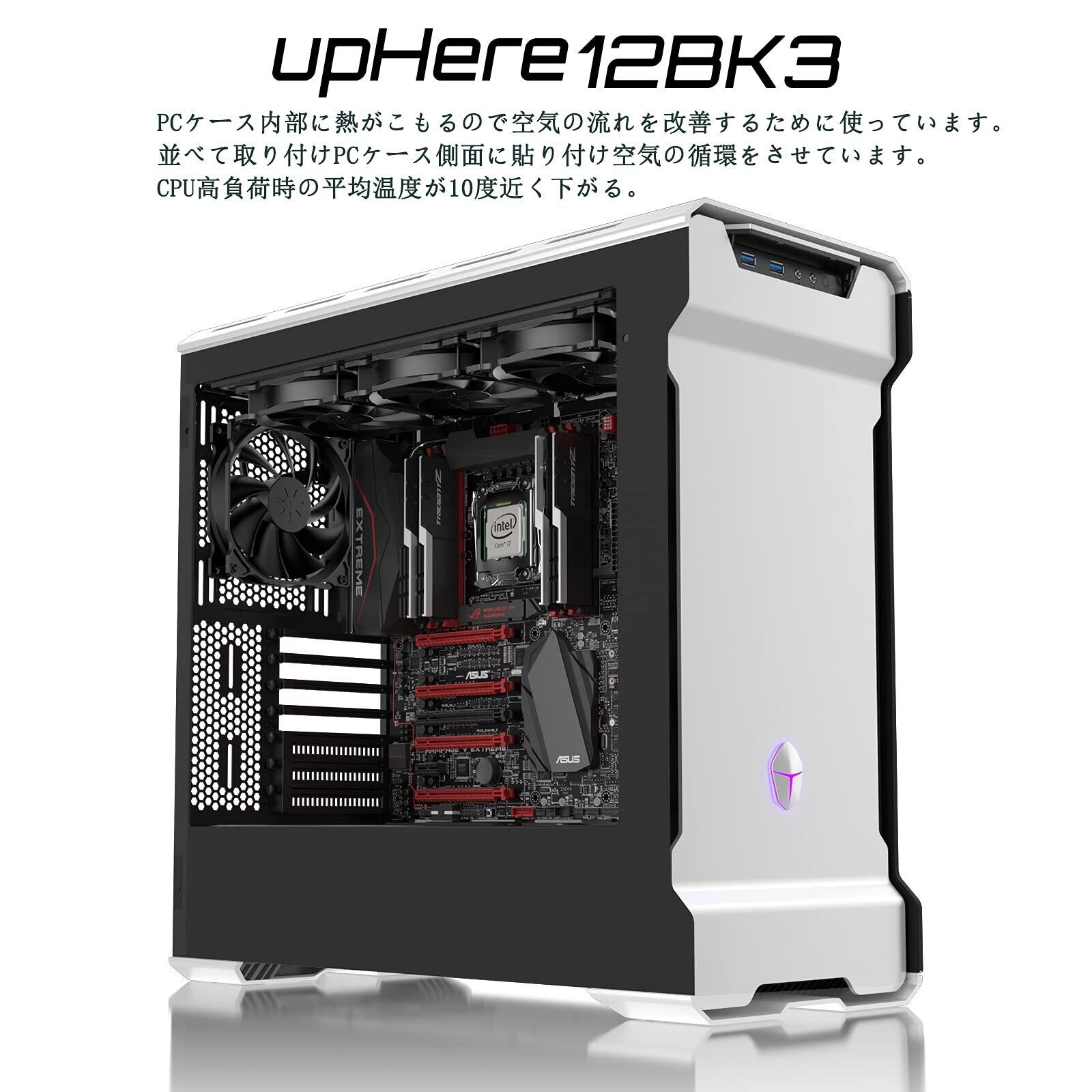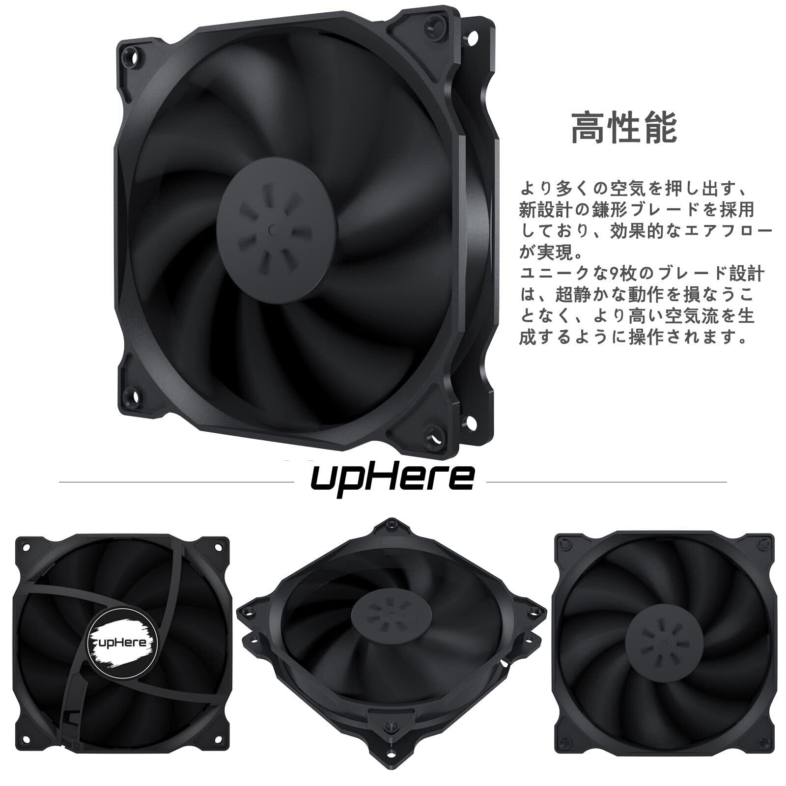 「『upHere 120mm PCケースファン 静音タイプ』は、冷却性能と静音性を兼ね備えた優れたファンです!25mmの厚さにより、省スペースでありながら強力なエアフローを実現し、PCのパフォーマンスを最大限に引き出します。」