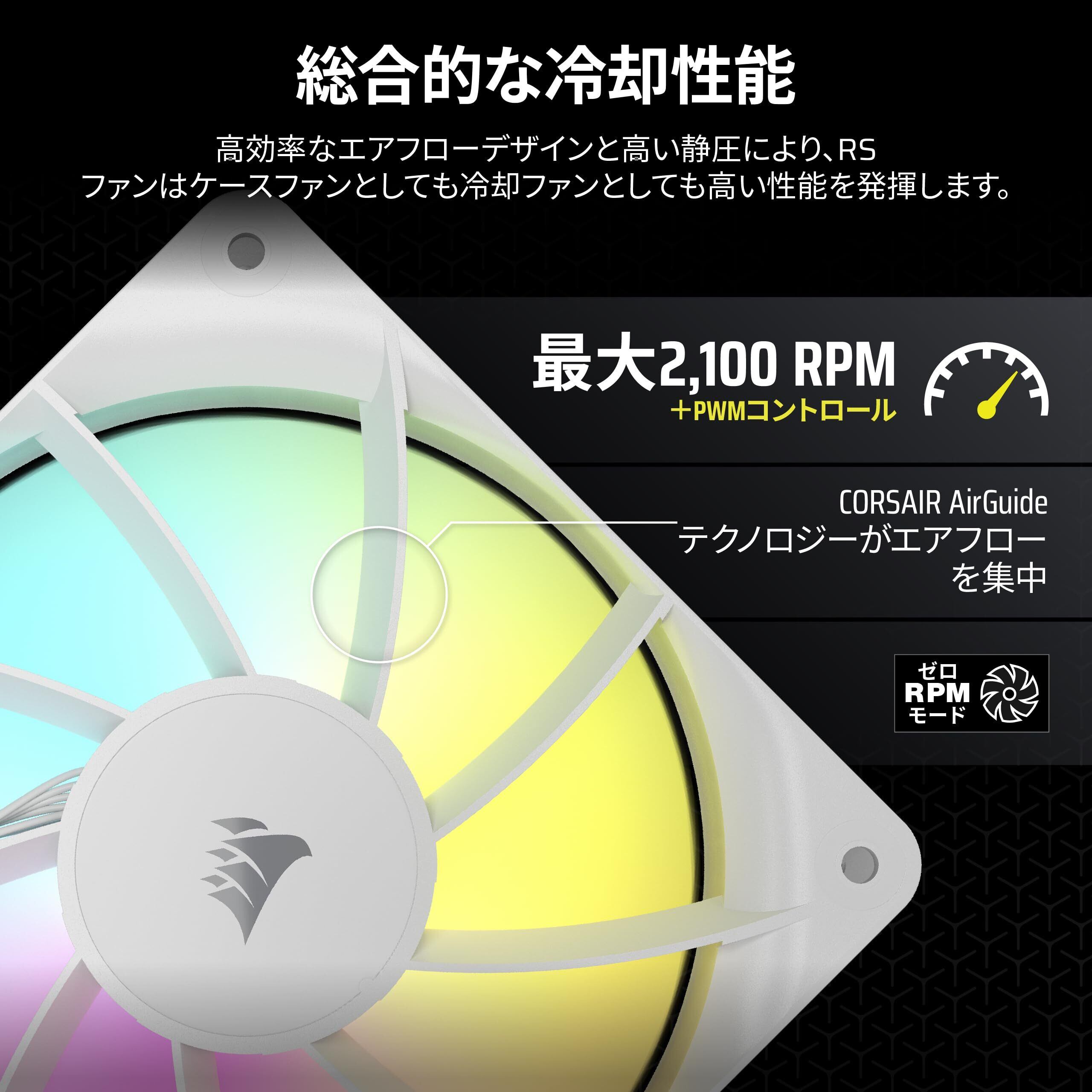 CORSAIR RS120 ARGB PWM 120mm PCケースファン デイジーチェーン対応 トリプルパック ホワイト CO-9050185-WW