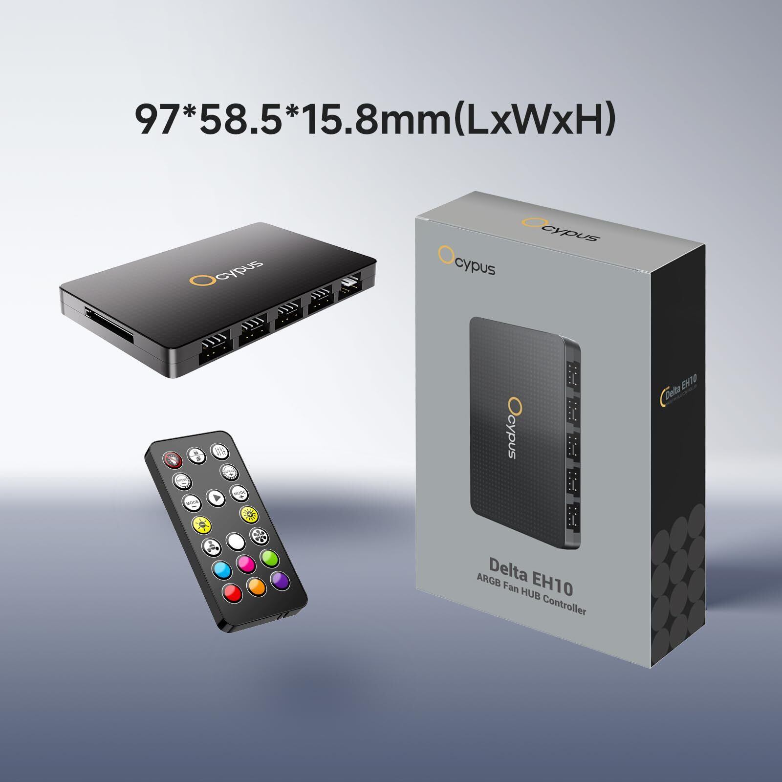 Delta EH10 PCケース用リモコン付きファンハブ、4ピンPWMファンまたは3ピンARGBファン用10ポートPCファンコントローラ、5V /12V対応、磁気設計、スマート保護 (BK)