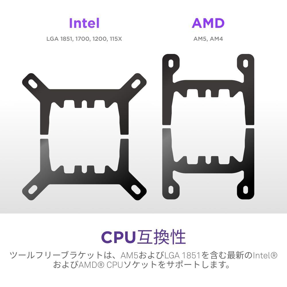 「取り付けが簡単な設計で、幅広いソケットに対応しています。ポンプとラジエーターはすでに組み立て済みで、スムーズに取り付けが行えますので、手間いらずでセットアップ可能です!」