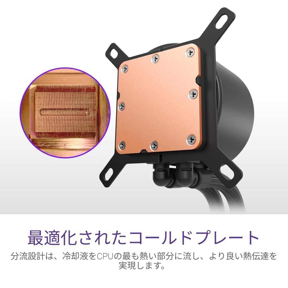 「水冷式だからこそ実現できる高い冷却能力が特徴です。高負荷時でもCPUをしっかり冷やし、オーバークロックやゲームプレイ時にも安定した動作を提供します。」