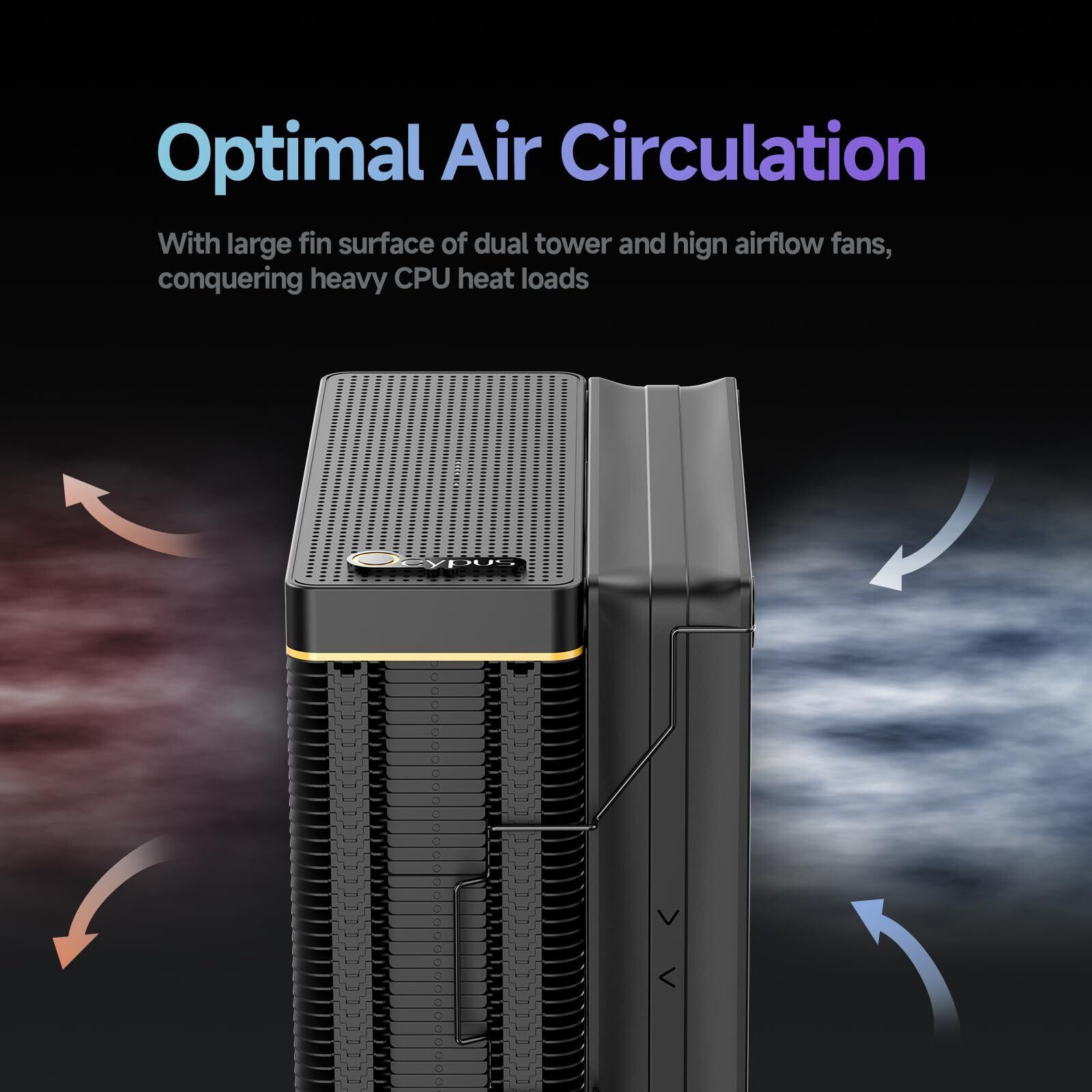 「4本の銅製ヒートパイプを搭載したこのCPUクーラーは、TDP 220Wまでの高負荷環境にも最適です。効率的な熱伝導により、CPUの温度を効果的に下げ、安定したパフォーマンスを維持します!」