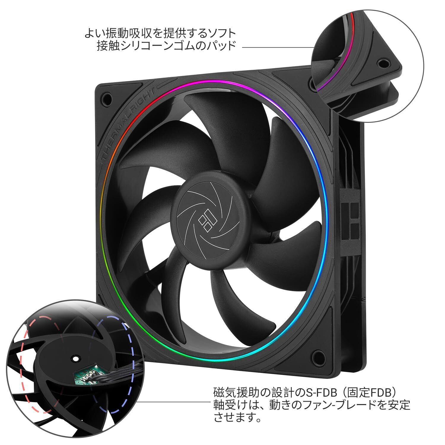 【高品質軸受】丹念に開発された高品質S-FDB軸受は、上昇モードでのpc冷却ファンブレードのジッタの問題を解決し、ファン騒音を最小限に抑えるとともに、必要に応じて最大の冷却性能を提供し、pcファンの寿命を延長した。