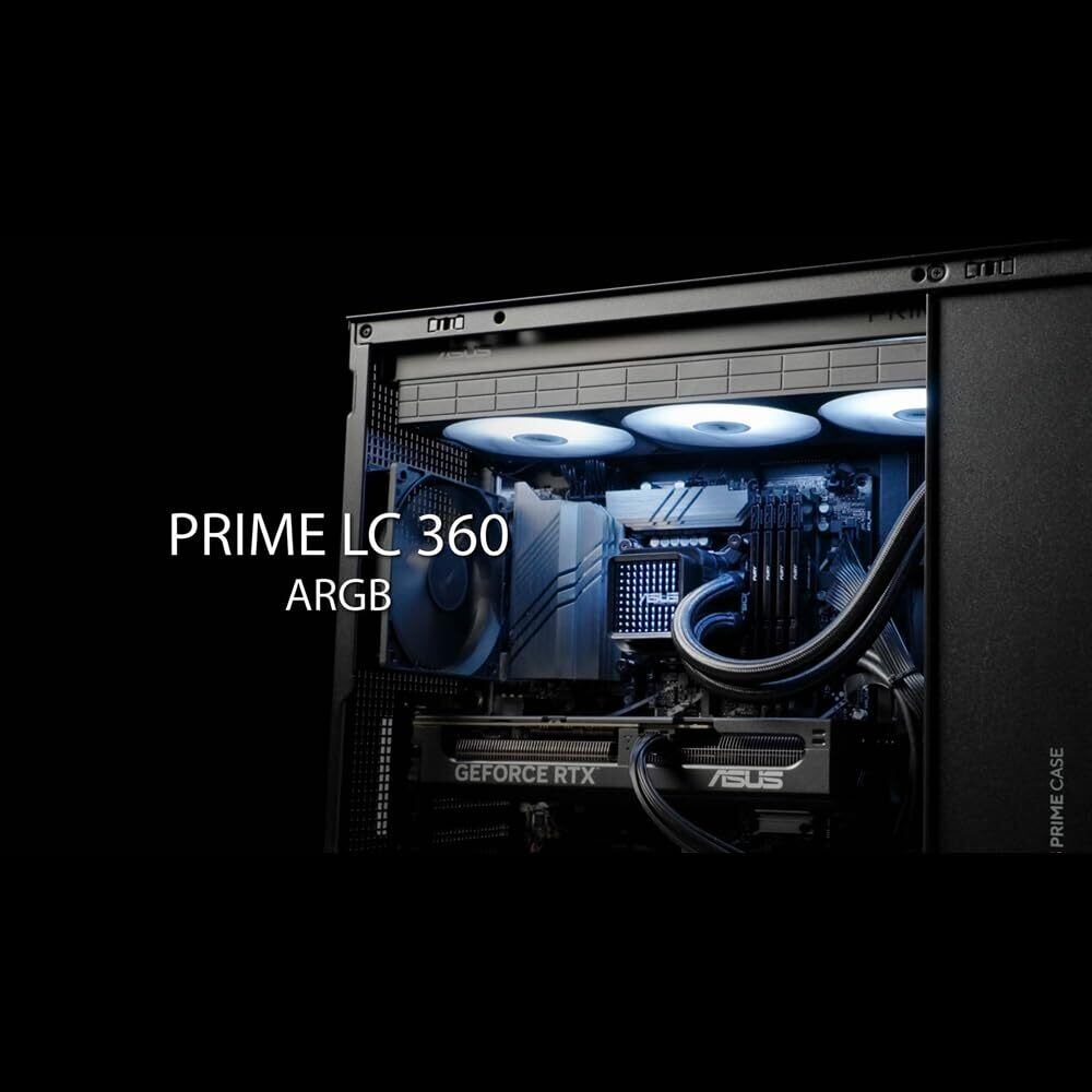 「『ASUS PRIME LC 360 ARGB』は、最新の技術を駆使した高性能のオールインワン水冷クーラーです!360mmラジエーターとARGB照明が一体となったこのクーラーは、優れた冷却効果を持ちながら、美しいビジュアルを兼ね備えています。」