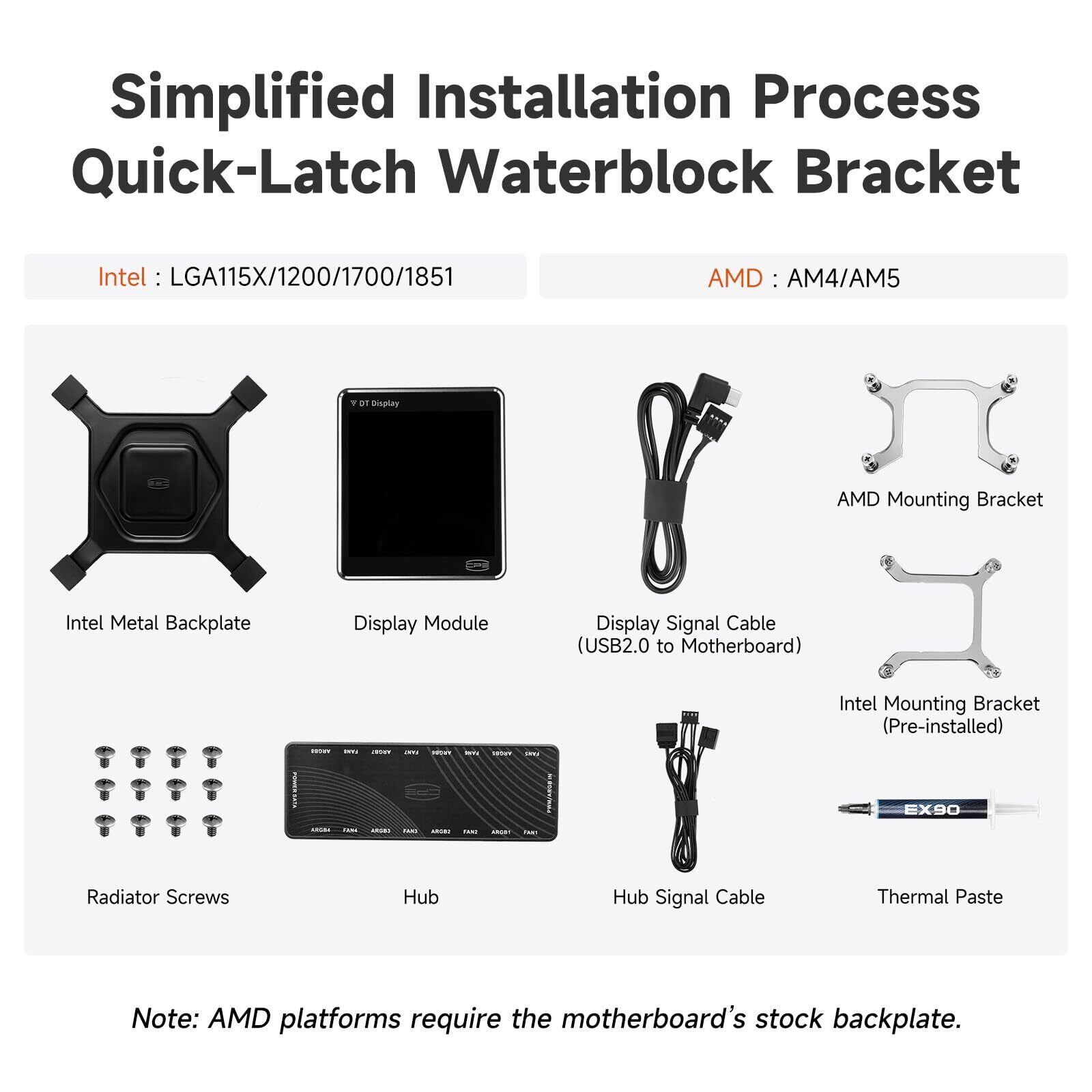 「この液体クーラーは、AMD AM4/AM5およびIntel LGA115X/1200/1700/1851ソケットに対応しており、取り付けは簡単です。付属の取り付けキットを使用することで、特別な工具が不要で、初心者でも安心して設置できます!」