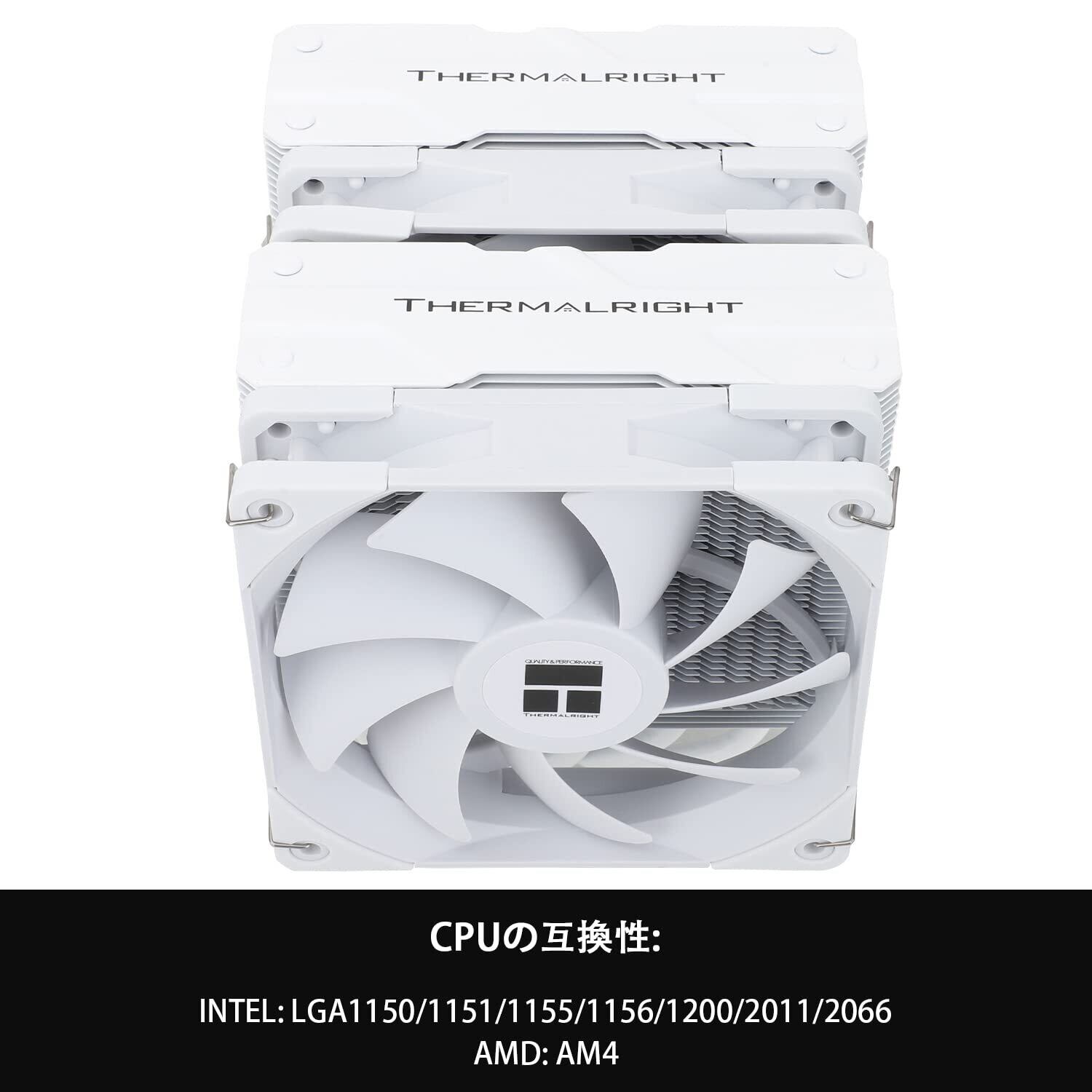 「『Thermalright Peerless Assassin 120 ホワイト』は、優れた冷却性能とスタイリッシュなデザインを兼ね備えたデュアルタワーCPUクーラーです!6本のヒートパイプに加え、120mm PWMファンを搭載しており、様々なシステムに対応する理想的な選択肢です。」