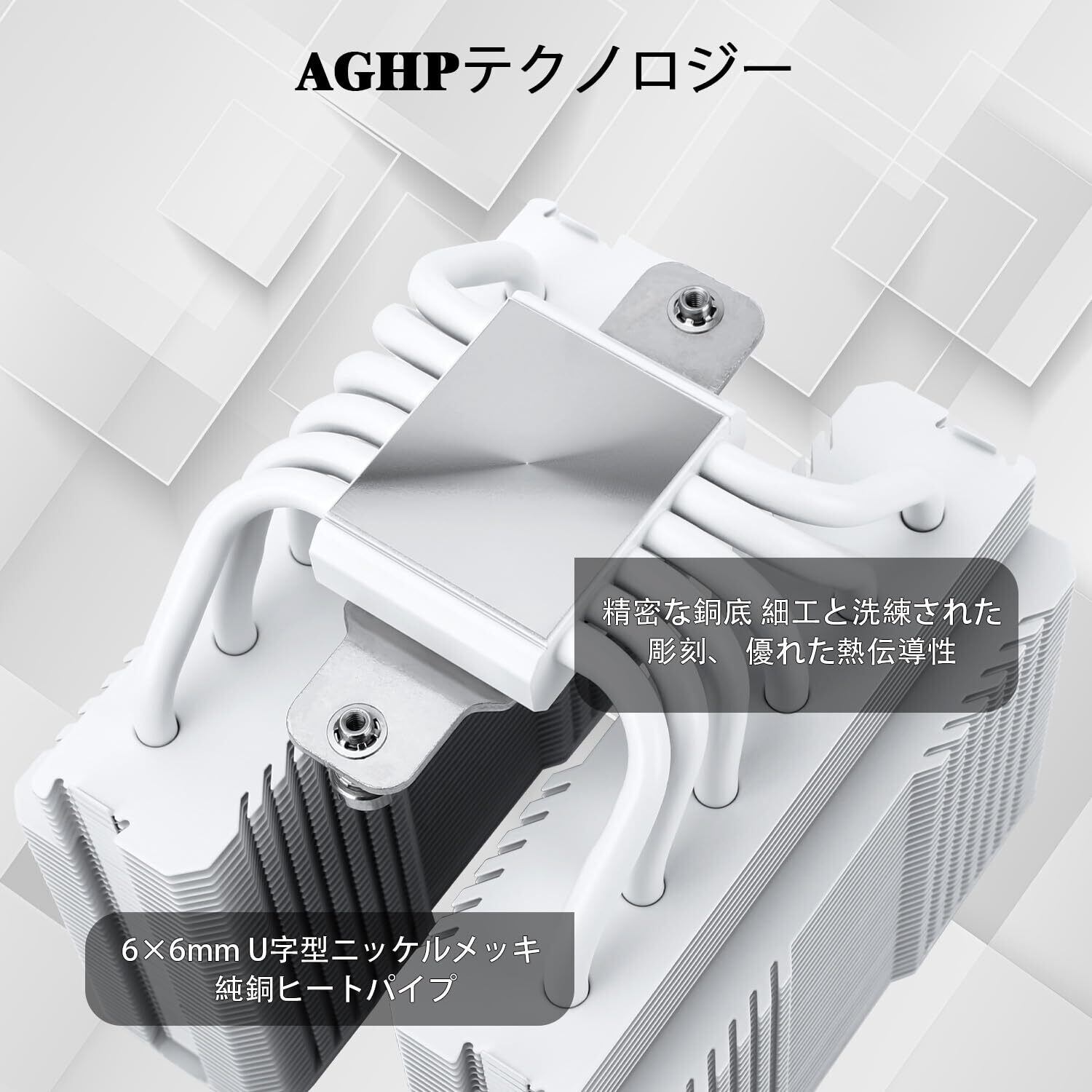 「デュアルタワー設計とAGHP技術により、効率的に熱を排出し、安定したパフォーマンスを発揮します。特に小型ケースや限定スペースでの使用に最適な一品です。重い負荷でも冷却能力を損なうことなく、あなたのCPUを守ります!」