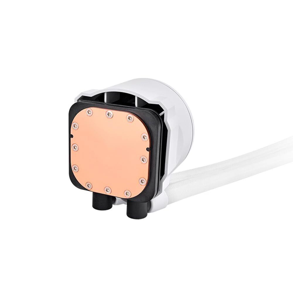 「『Thermaltake TH240 ARGB Sync V2 -Snow-』は、240mmのラジエーターと120mm ARGBファン2基を搭載した高性能な簡易水冷CPUクーラーです!ファンの美しいARGBライティングが、あらゆるシステムにスタイリッシュな演出を加え、優れた冷却性能でCPUをしっかりとサポートします。」