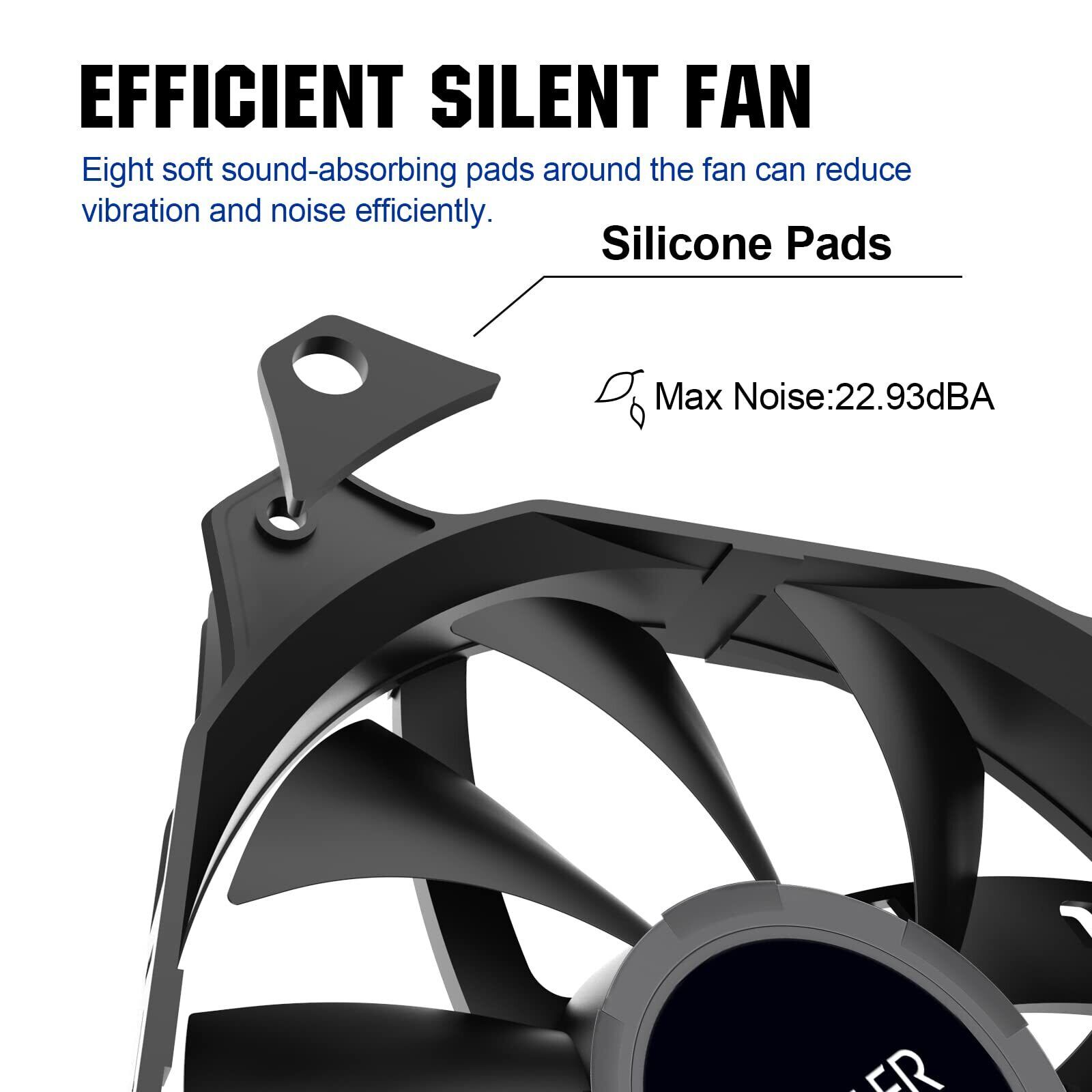 【高品質静音ファン】 DN-120ファンは、高速で振動を吸収できる8つのソフトシリコンクッションに囲まれています。 最大ノイズはわずか22.93dBAで、落ち葉の音に相当します。 仕事やゲーム中の騒音に邪魔されることを拒否しましょう。
