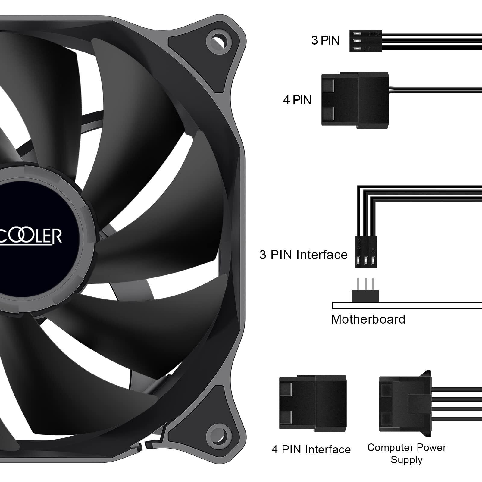 PCCOOLER 120mm PCケースファン,DN 120 120 mmケースファン,3パック深夜シリーズ 静音タイプ 25mm厚 1200RPM 高性能冷却PCファン-高効率油圧軸受-低振動, コンピュータファン120 mm CPU冷却器ファン3in1 3 パック黒い