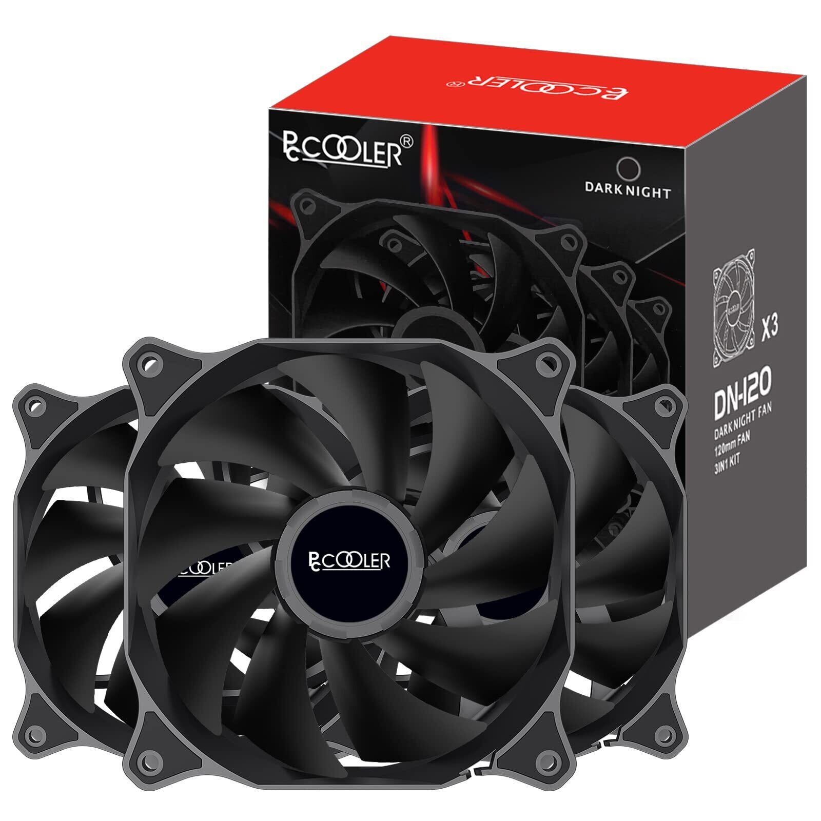 **PCCOOLER 120mm PCケースファン DN 120|高性能冷却PCファン 3パック 深夜シリーズ 静音タイプ!**