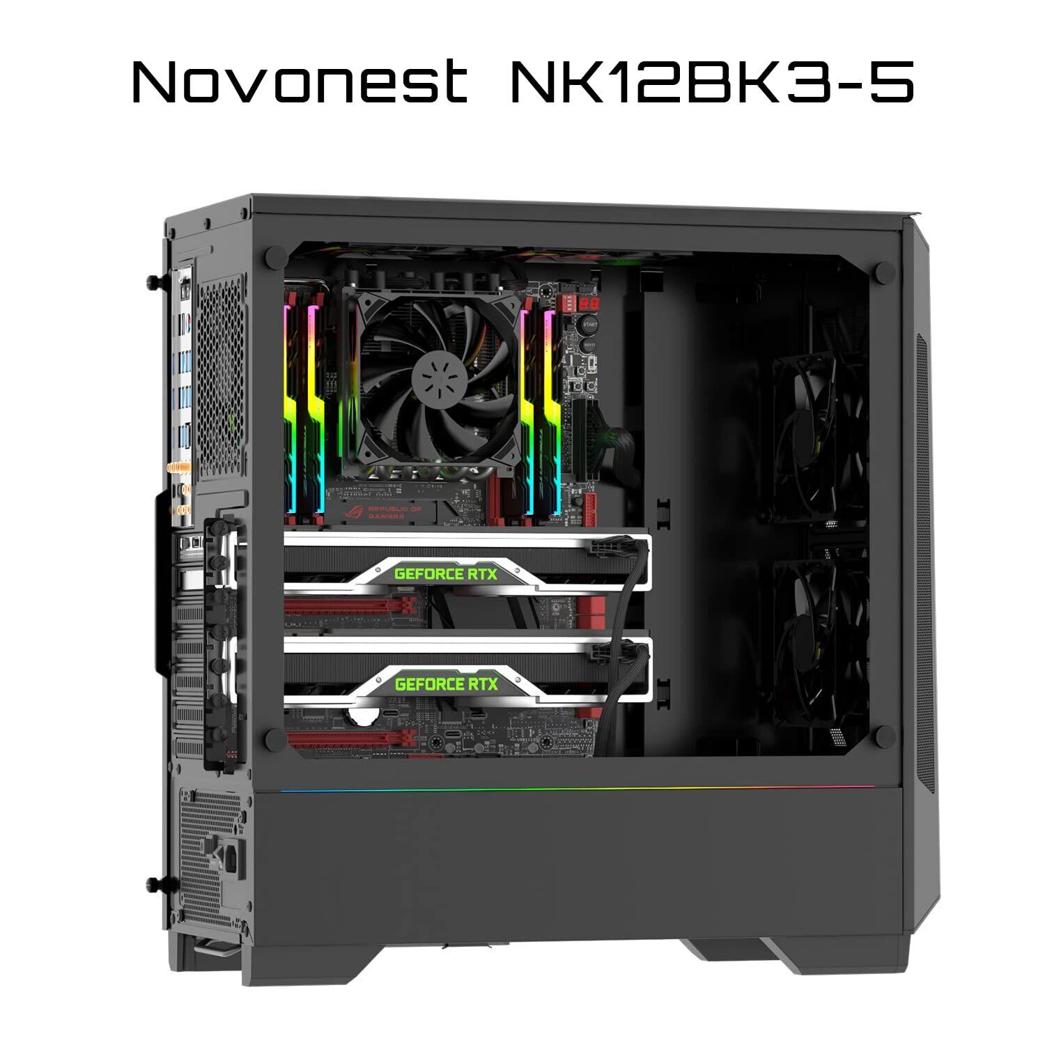 Novonest PCケースファン 120mm 静音 高性能 冷却 ファン 3ピン コネクタ 12cm ファン 薄型 5本1セット 真っ黒「NK12BK3-5」