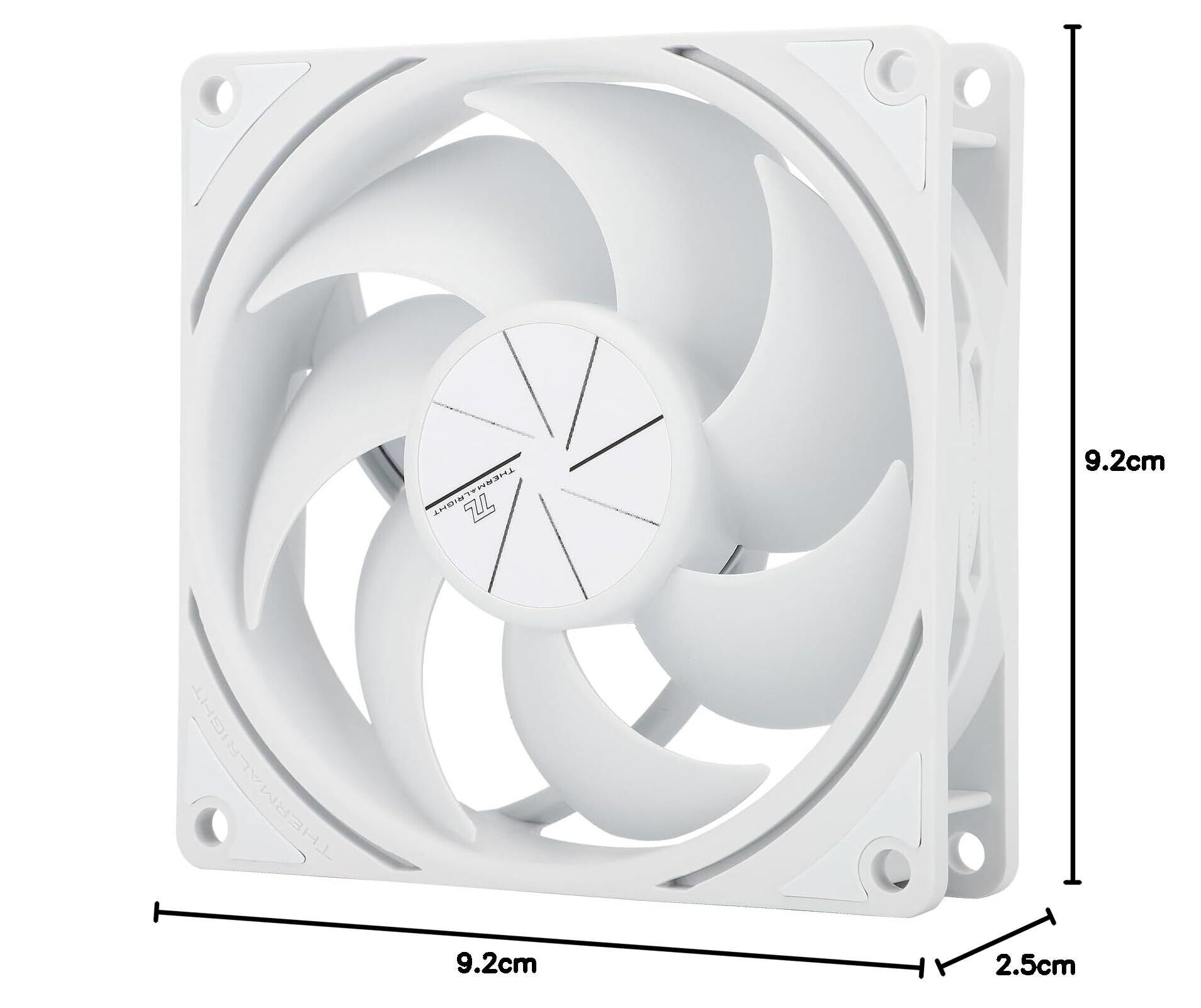 Thermalright TL-P9W CPUファンコンピュータケース冷却静かな4PIN PWM、高性能92mm静音クーラーファン、2200RPM速度(白)