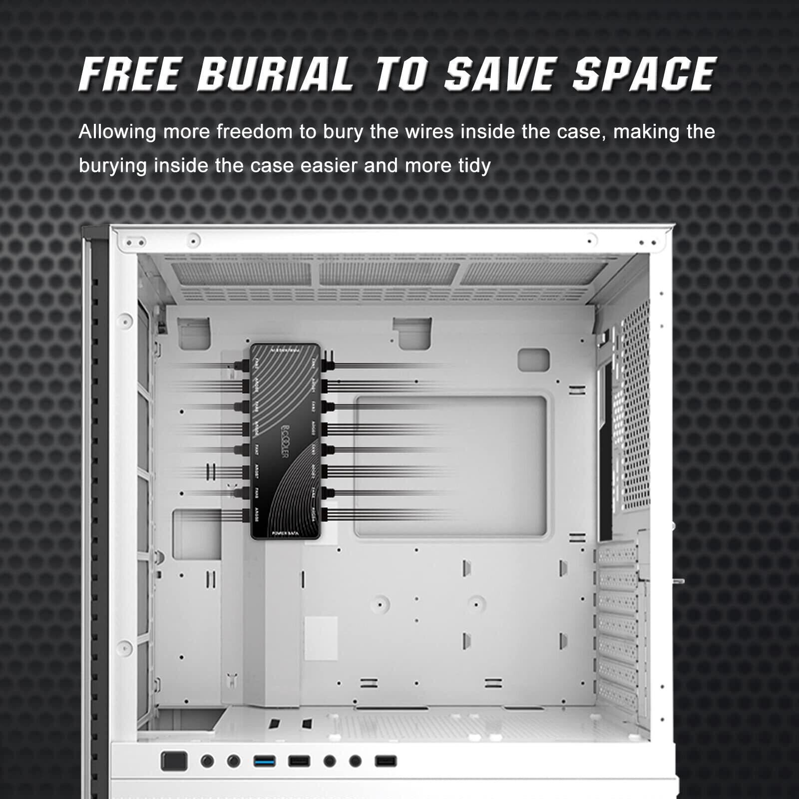 【磁性バックプレーン設計】PCOOLER 1〜10ファンハブは超磁性設計を採用し、pcシャーシの金属表面に付着でき、自由に置くことができ、両面テープを使用してシャーシを固定する必要がなく、より簡単で便利である。