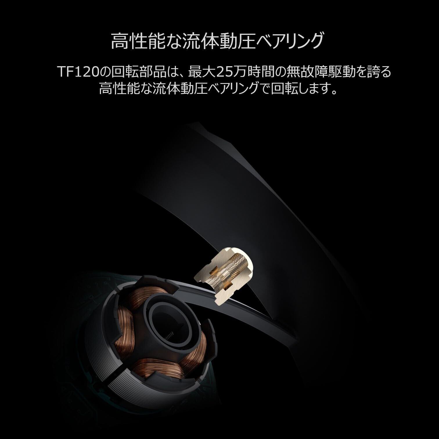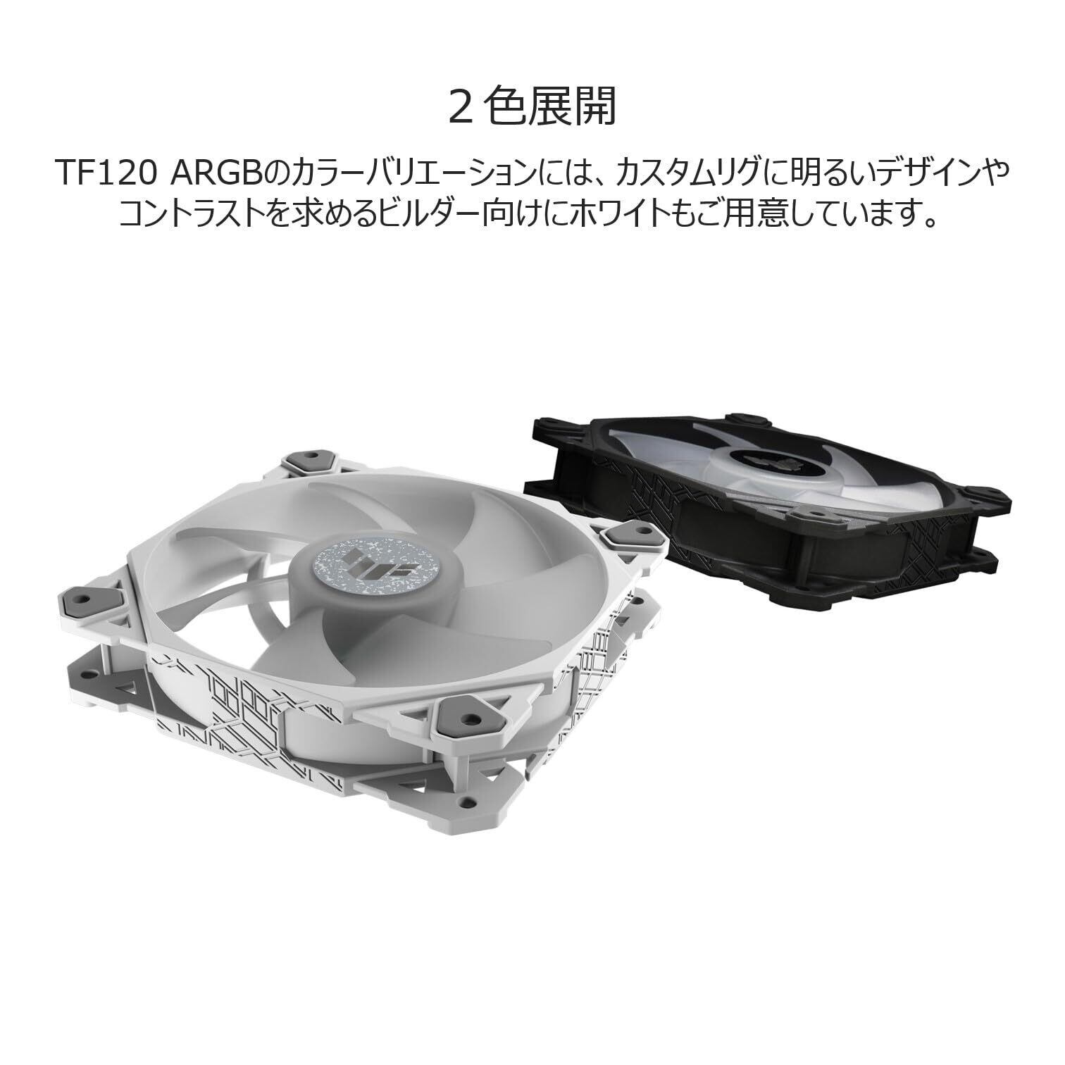 「『ASUS ケースファン TF120』は、アドレナリンを刺激するような高性能を提供する120mmファンのパックです!高い静圧とエアフローを実現し、実用性と美しさを兼ね備えた冷却ソリューションです。」