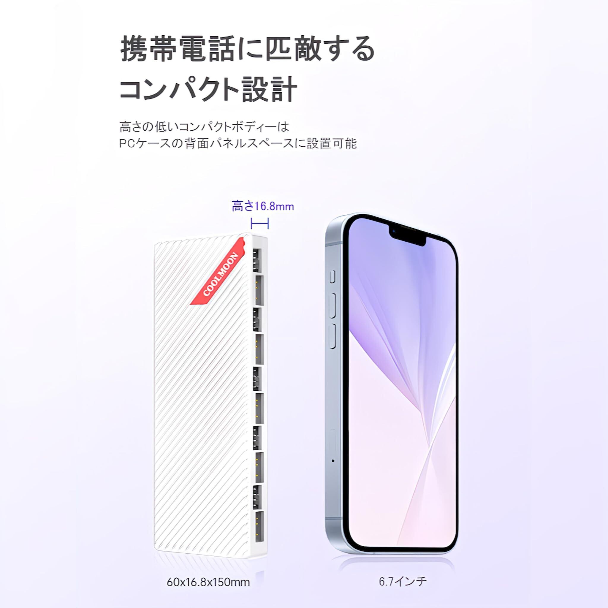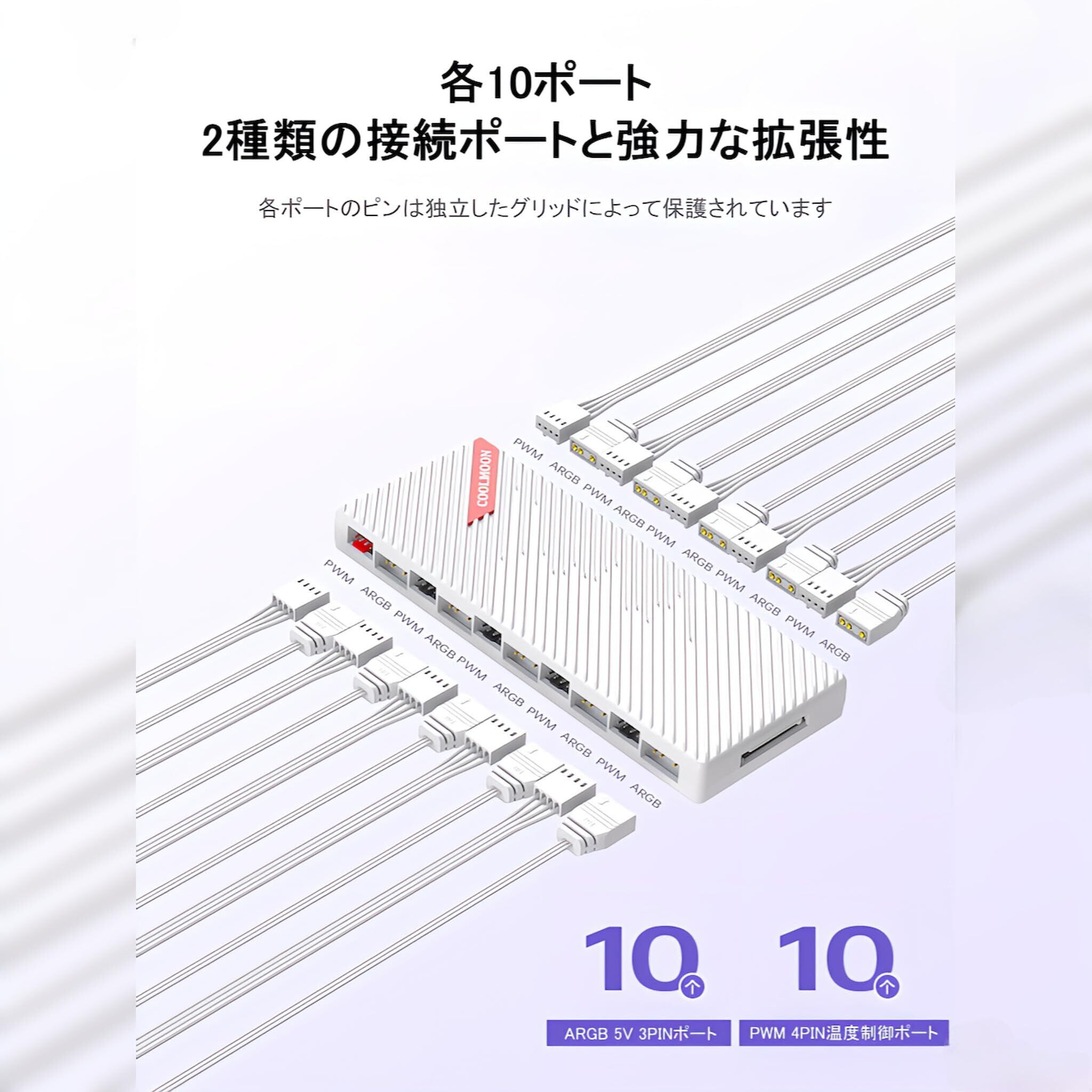 「『COOLMOON ファンハブコントローラー』は、あなたのPC冷却システムを一新するための万能なソリューションです!20ポートの接続を実現し、多彩なファンやRGBデバイスをスマートに管理します。」