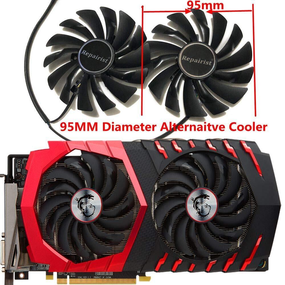 MSI用 GTX1080TI GTX1070 RX580 RX570 RX480 GAMING GTX 1080/1070 ARMOR GPU VGA オルタナティブ PCパーツ 冷却パーツ・ファン グラフィックカードファン (PLD10010S12HH 95mm DC 12V 0.4A 2pcs/セット 曲り羽根)