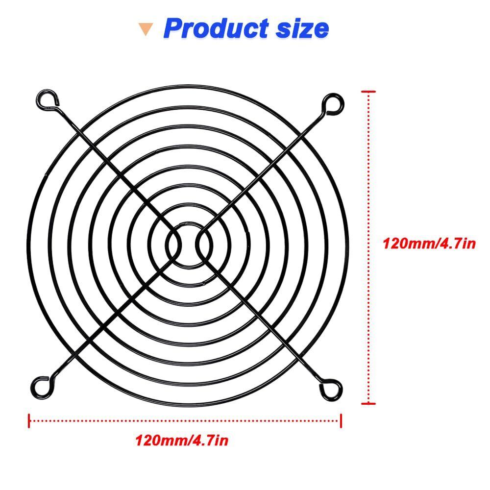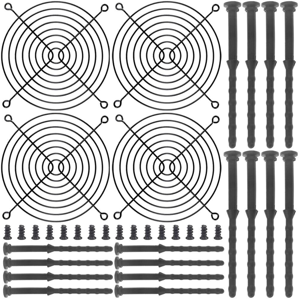 **120mmブラックフィンガーグリル - PCコンピュータ冷却ファングリル120mmガード保護カバー(ネジ付き、ゴム製PCファンネジ4パック)!**