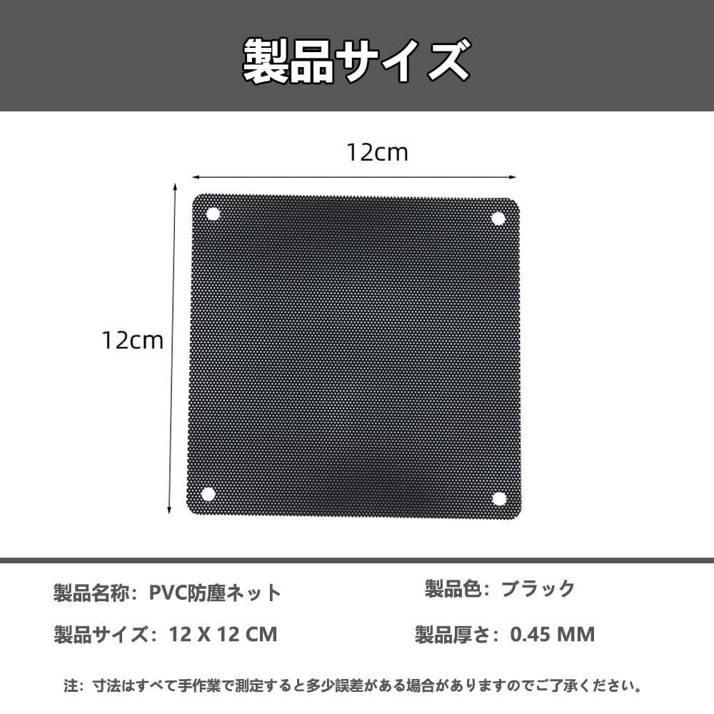 PC用 防塵 ファンケース 防塵メッシュ 交換用 グリル メッシュ 洗って繰り返し使える コンピュータクーラーファンケース 防塵メッシュカバー PC ブラック(120×120mm、12枚セット)