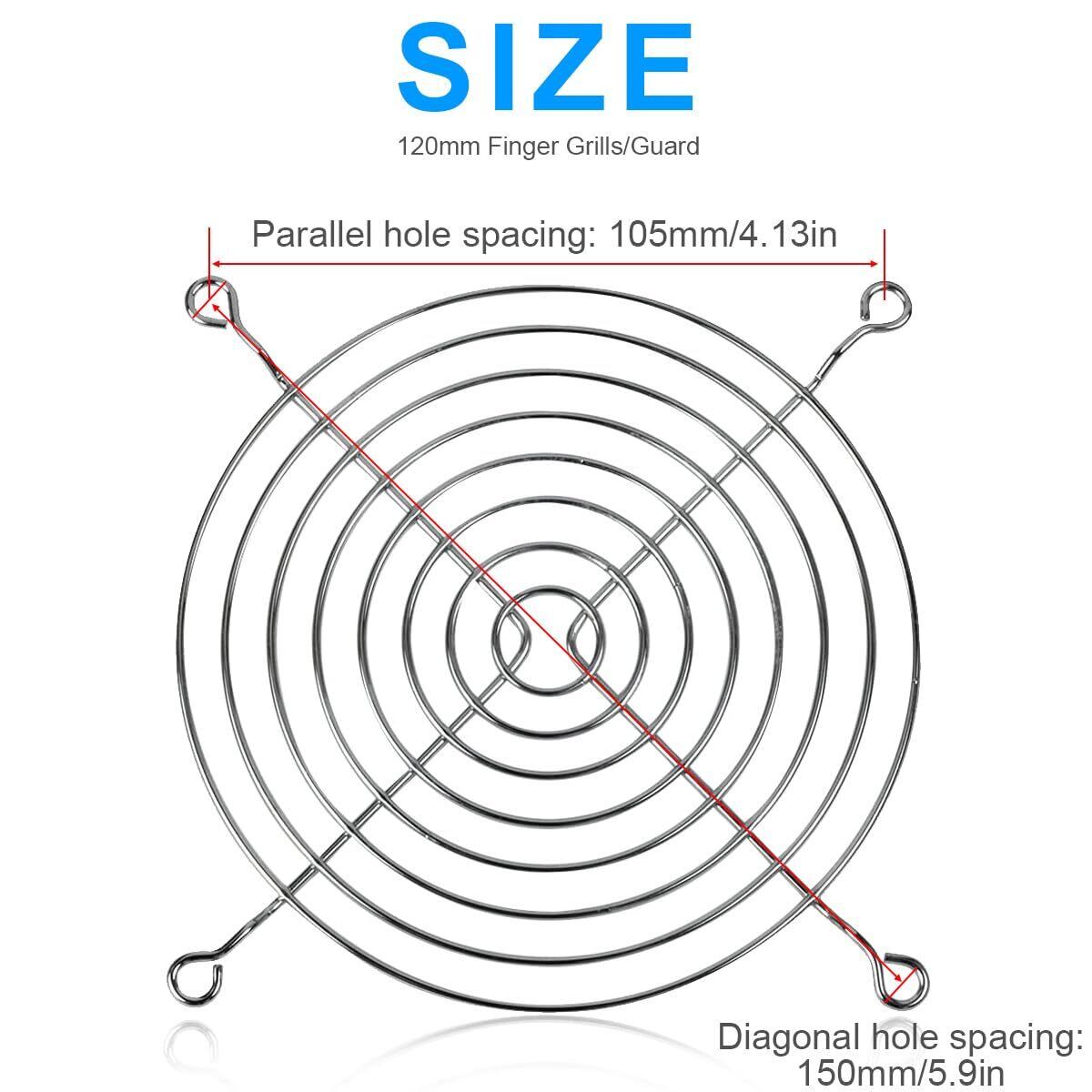 120ミリメートルフィンガーグリルガード銀120ミリメートルx 120ミリメートル金属グリルファン、PC換気扇用ネジ付きファンカバーベース冷却ファンプロテクター(4個)