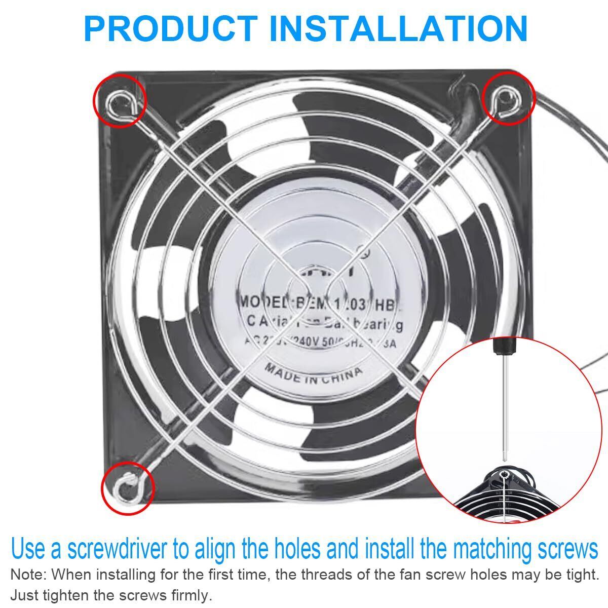 注意: 最初の取り付け中、ファンのネジ穴のネジ山がきつい場合があります。 ネジをしっかり締めて確実にフィットするようにしてください。