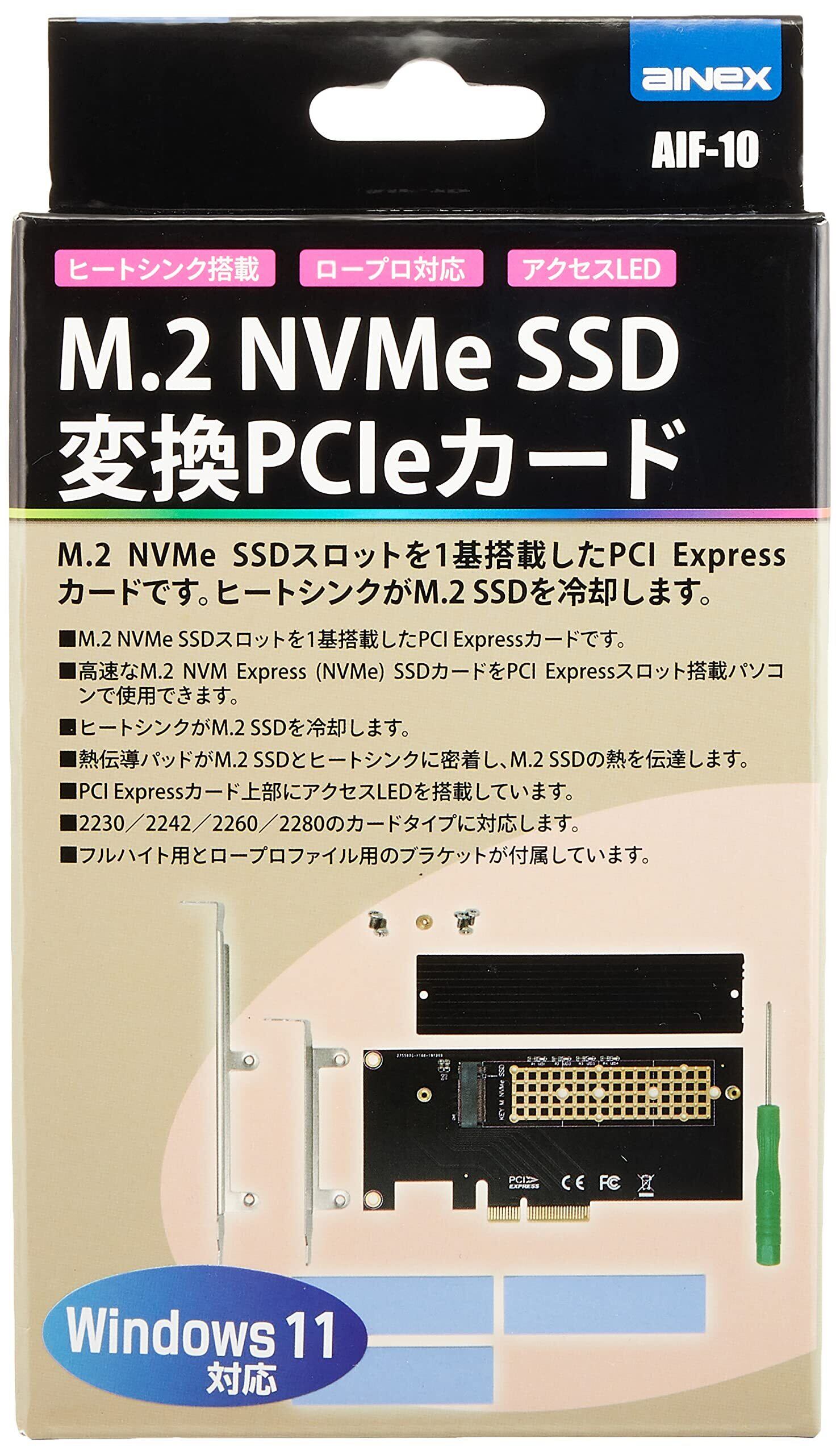 アイネックス(AINEX) ヒートシンク搭載 M.2 NVMe SSD変換PCIeカード AIF-10