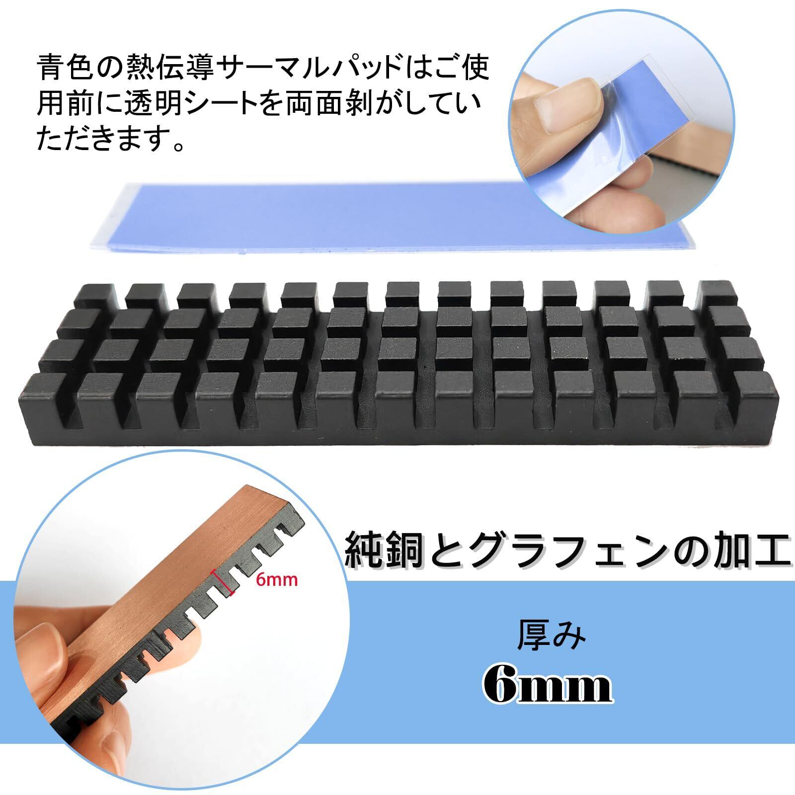 **ヒートシンク 銅製 6mm M.2 SSD グラフェン被覆|冷却用発熱対策、サーマルパッド付き、CPU・ICチップ・回路基板・LEDアンプに最適!**