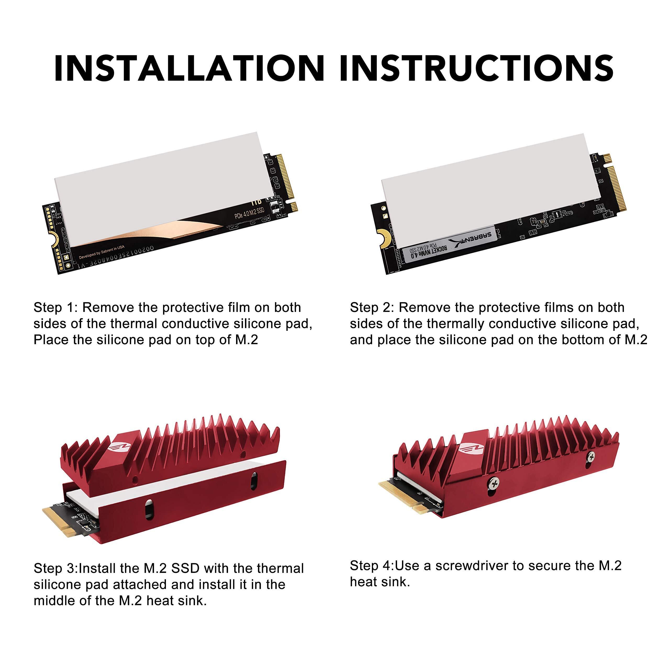 EZDIY-FAB M.2 2280 SSDヒートシンク、両面ヒートシンク、PC/PS5にサポートする, PCIE NVME M.2 SSDまたはSATA M.2 SSD用の高性能SSDクーラー赤