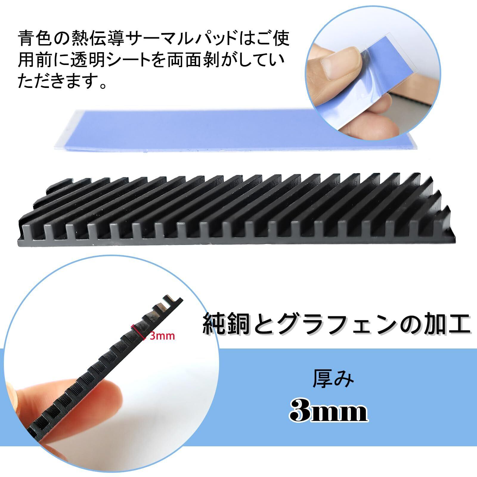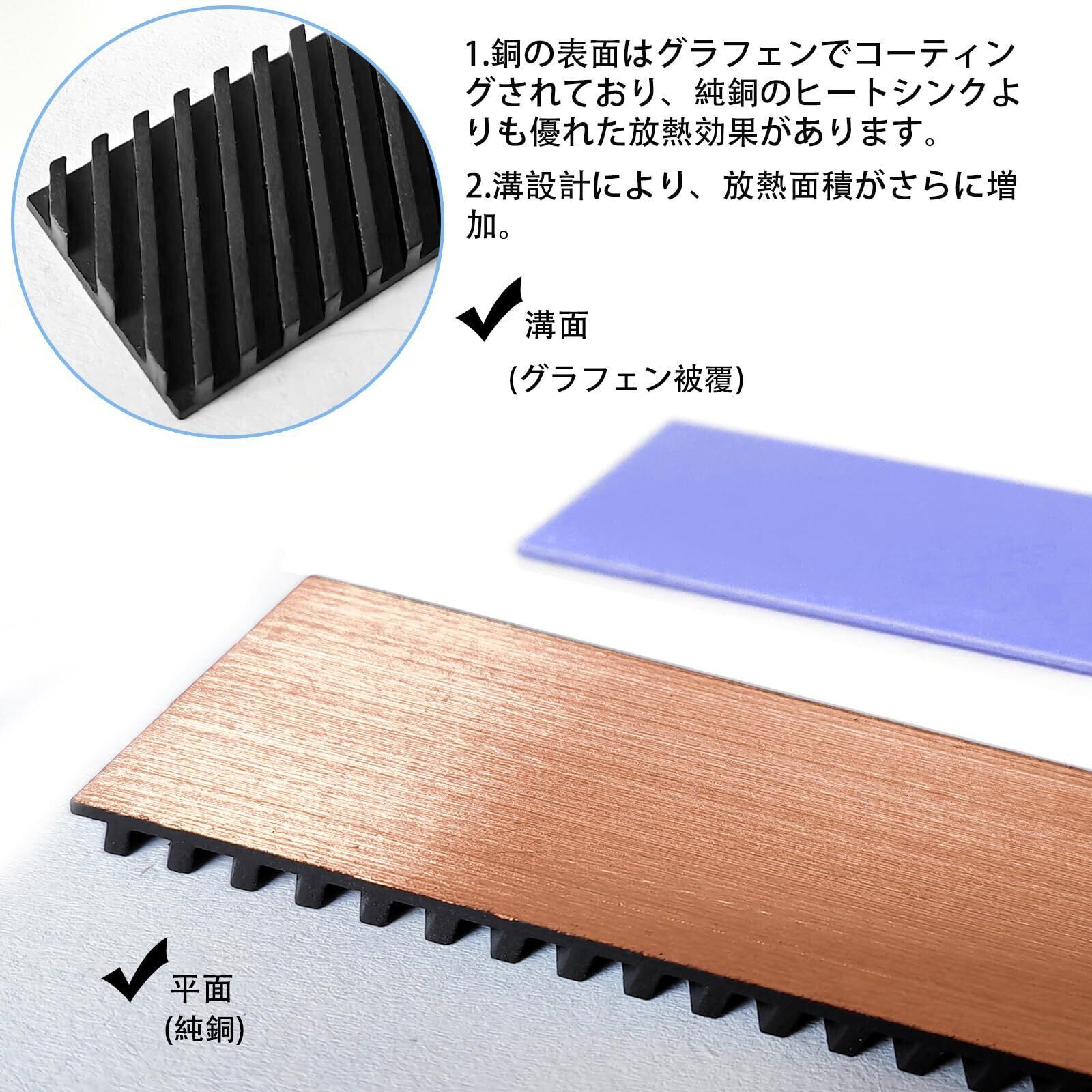 銅製 M.2 SSD ヒートシンク 3mm 薄型 グラフェン被覆 熱暴走対策 2280 M2 SSD PS5 ノートPC 用 ヒートシンク サーマルパッド付き 70*20*3mm