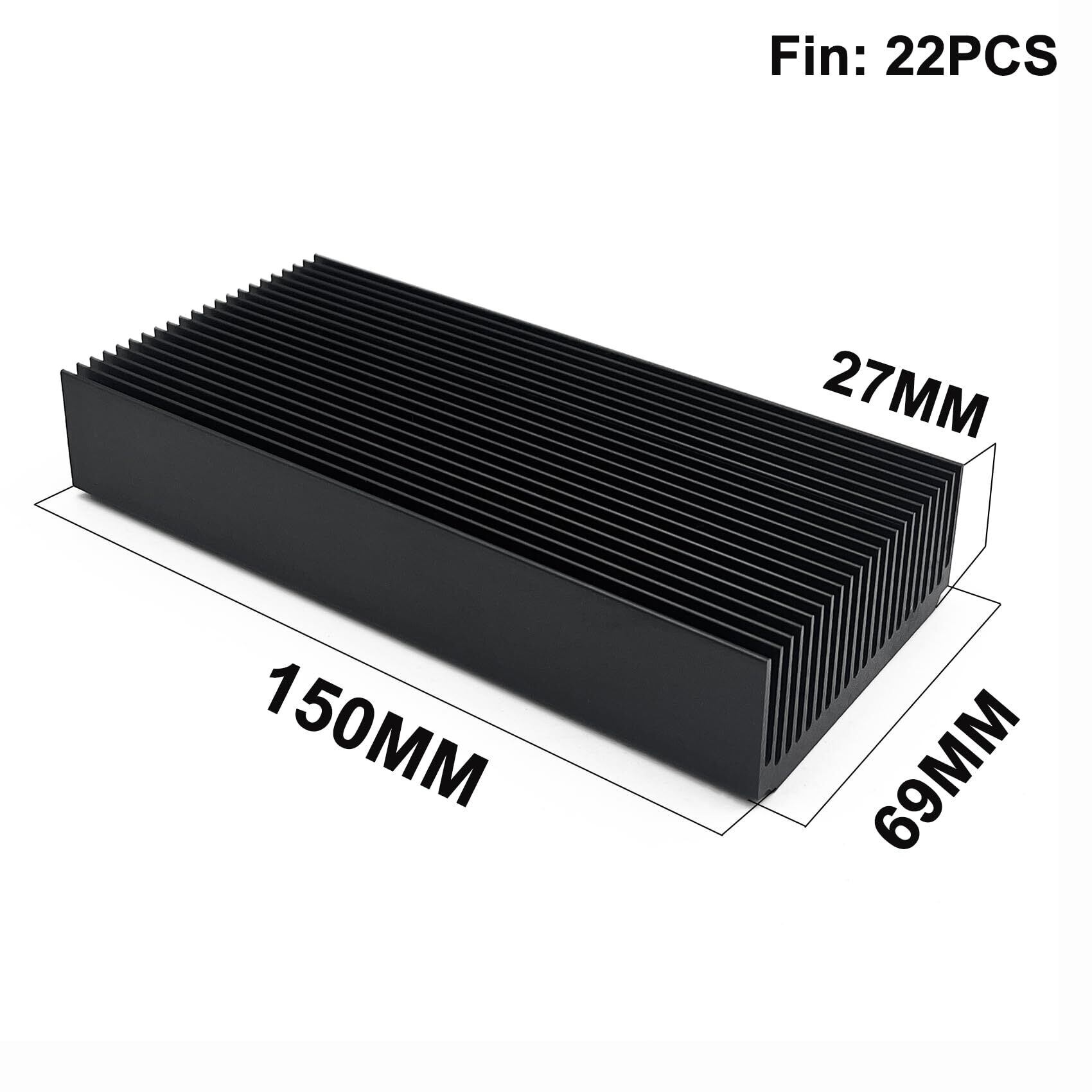 **ヒートシンク 大型 冷却 フィンアルミ|150 x 69 x 27mm、27フィン冷却板、オーディオファン放熱板、コンピュータ用LEDチップ、ルーター電源充電器、黒色**