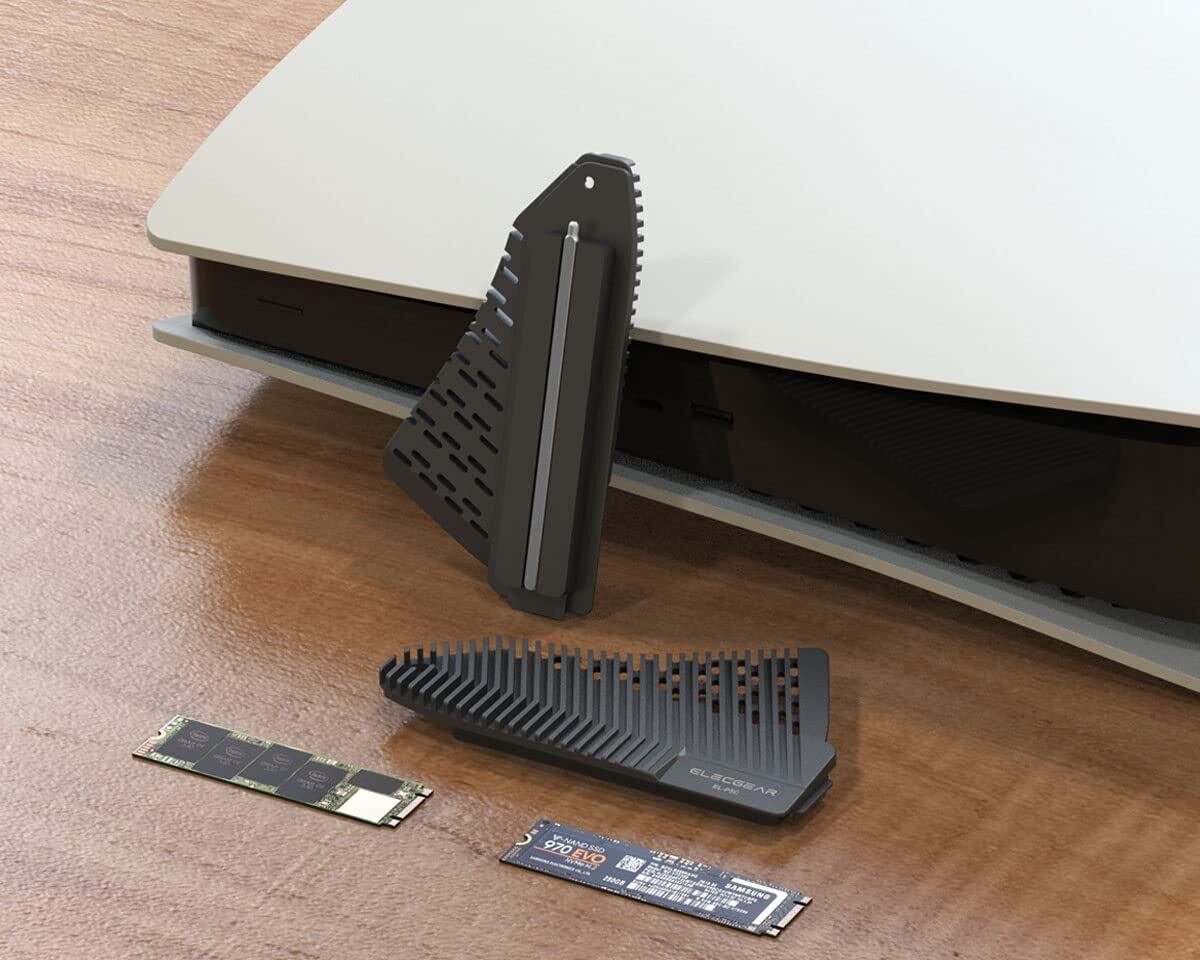 ElecGear PS5 NVMe SSD ヒートシンク、EL-P5C ヒート パイプ + ソリッド アルミニウム ヒートシンク クーラー、プレイステーション 5 内部 PCIe M.2 NVMe 4.0 Gen4 ゲーミング メモリ用、サーマルパッドと、再設計された SSD マウント ポスト キット