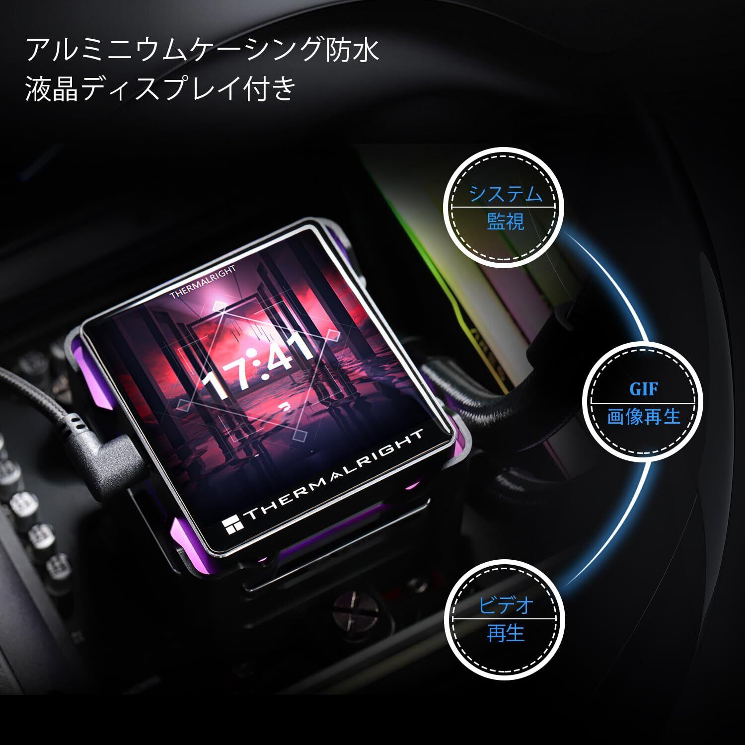 Thermalright Elite Vision 360 ARGB BLACK CPU AIOクーラー、320 320解像度のIPS LCDスクリーン、AM5&Intel 1700/1851用、高性能CPU水冷2.73インチリムーバブル液晶ディスプレイ