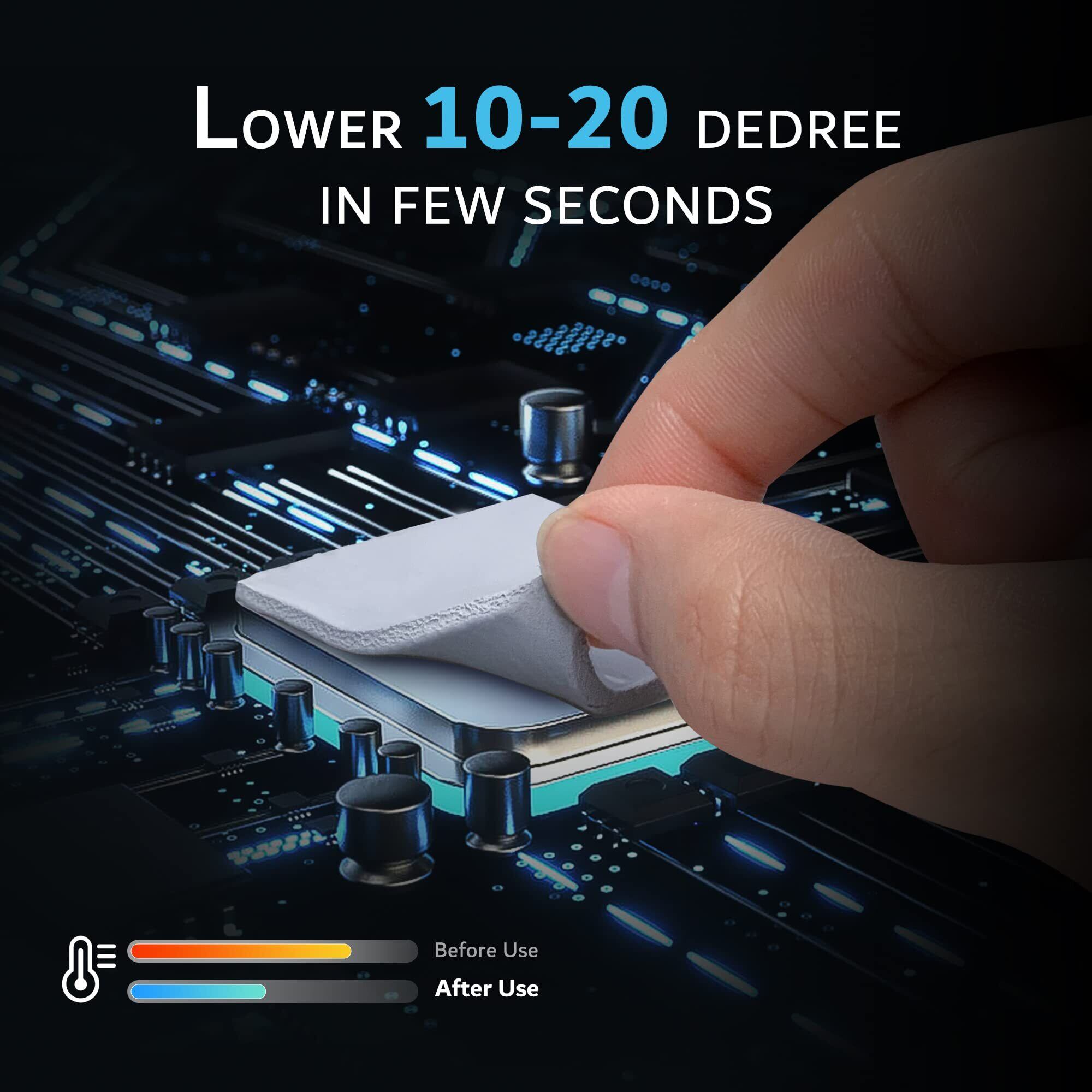 使いやすい:100 x 100 mm、両面にやや粘性があり、お客様のカスタマイズニーズに応じて自由に切断し、両面保護フィルムをはがして貼り付けることができます。柔軟で圧縮可能なアップグレード熱伝導材料は30-40%の圧縮率を実現することができ、伝統的なヒートシンク複合グリースの完璧な代替品です