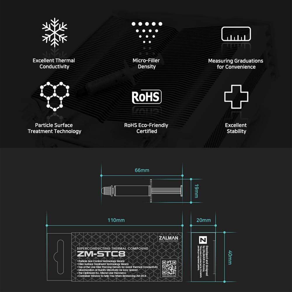 「『ZALMAN ZM-STC8 熱伝導グリス 目盛り付き HS1371』は、優れた熱伝導性能を持つ高品質なサーマルグリスです!精密な目盛りが付いているため、適切な塗布量を簡単に確認でき、効率的な熱管理をサポートします。」
