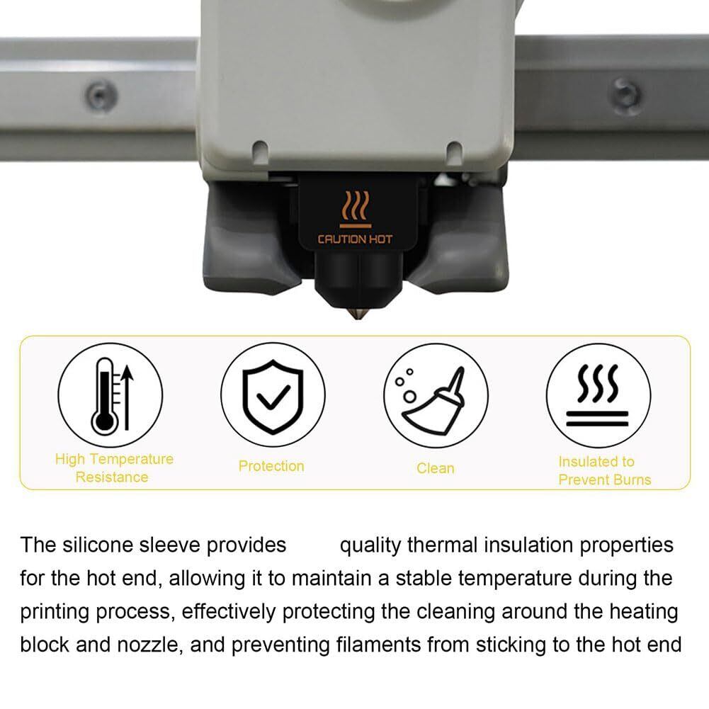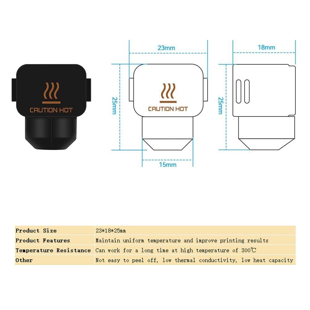 「このシリコンソックスは、300℃という高温にも耐えることができ、ヒーターブロックをしっかりと保護します!これにより、熱の集中を促し、温度保持能力が格段に向上します。」