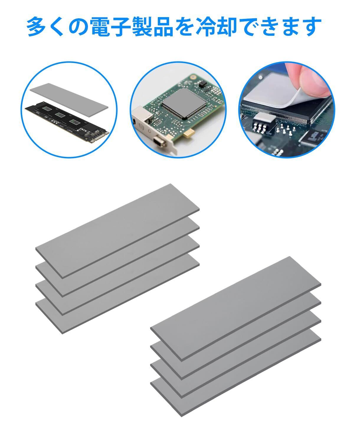 【幅広い冷却シーンに対応】: デスクトップPC/ノートPCのCPU・GPU冷却、SSD(M.2 NVMe/SATA)冷却、グラフィックボードのVRM/チップセット冷却、LED照明基板、ルーター、各種電源ユニット、家電製品の放熱対策など、様々な電子機器の熱管理に最適です。
