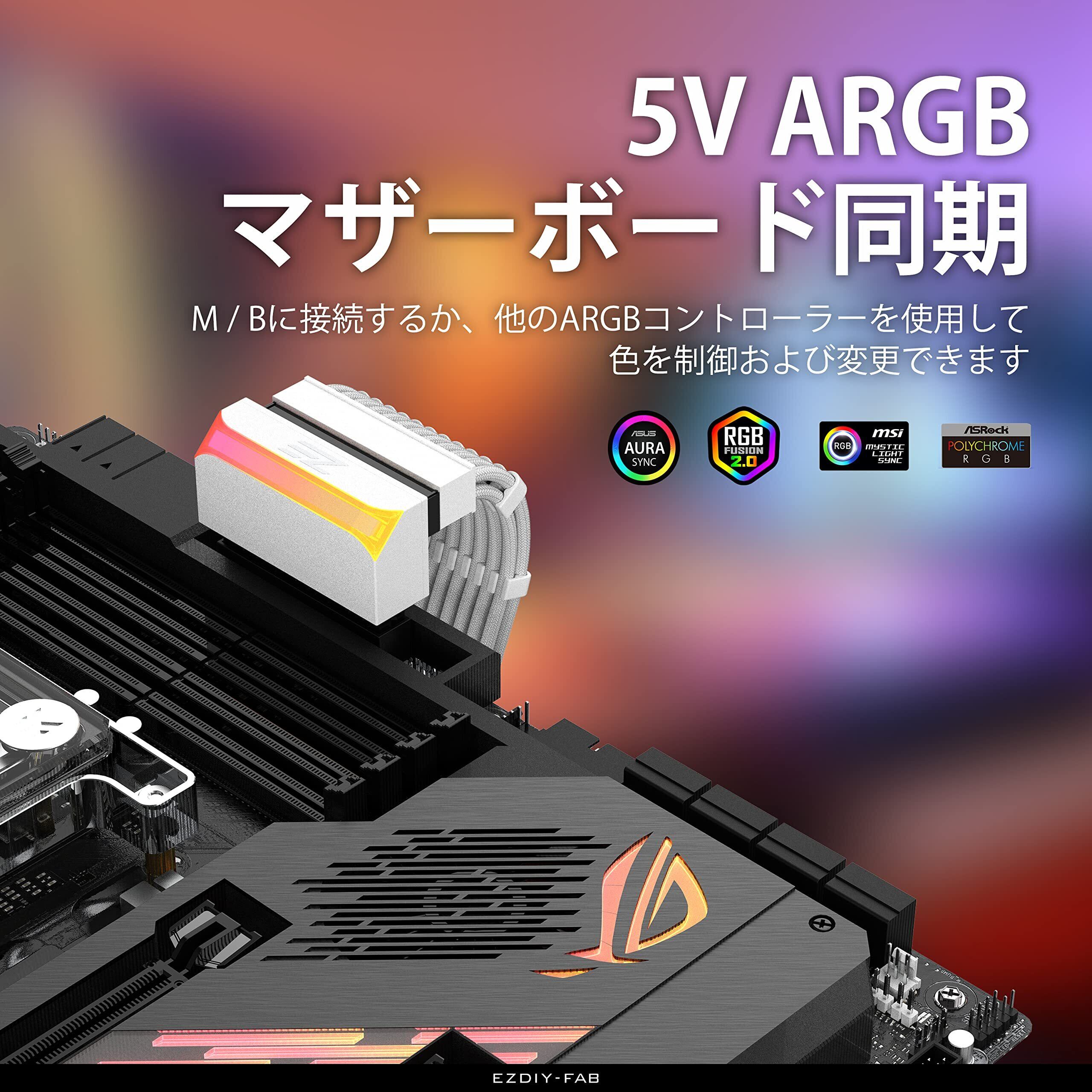EZDIY-FAB ATX 24ピン90度電源コネクタ 5V3ピンARGBメスからオス - 白