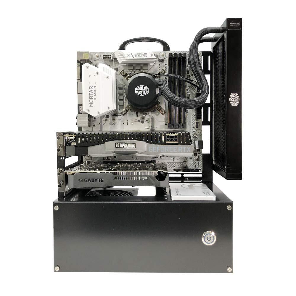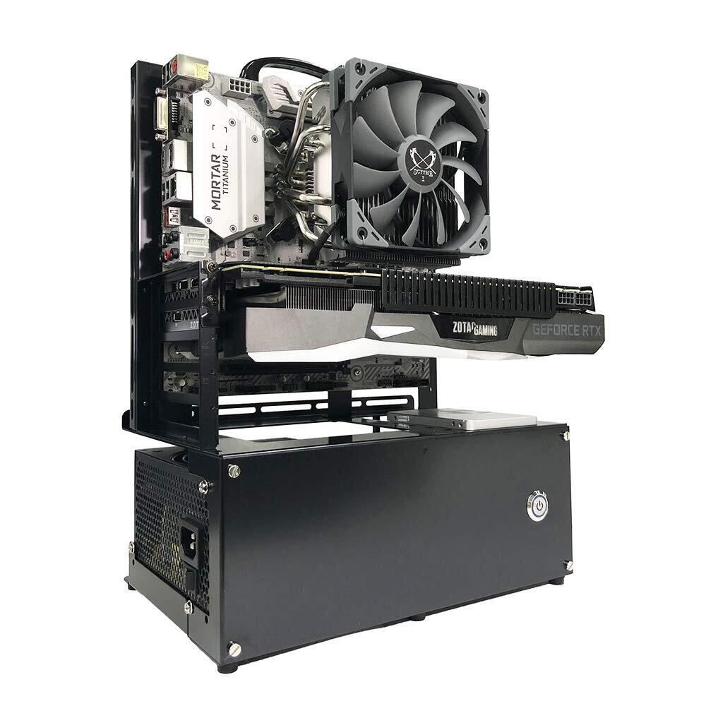 PCパーツが主役のMicro-ATX対応オープンフレームです。汎用性も高くmini-ITX, mini-DTX, micro-ATXと幅広いマザーボードサイズに対応可能。グラフィックボードは垂直設置にも対応可能(ライザーケーブルはオプション):グラフィックボードのフロントを魅せる設置が可能。※CPUクーラー制限:VGA垂直設置した場合のみ、高さ90mmまでの制限が発生します。