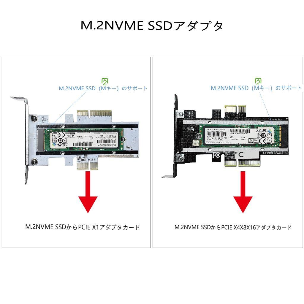 PCIe 1X 4X / 8X / 16X、M-Key/B&M-key PCIE to M.2アダプタに準拠。