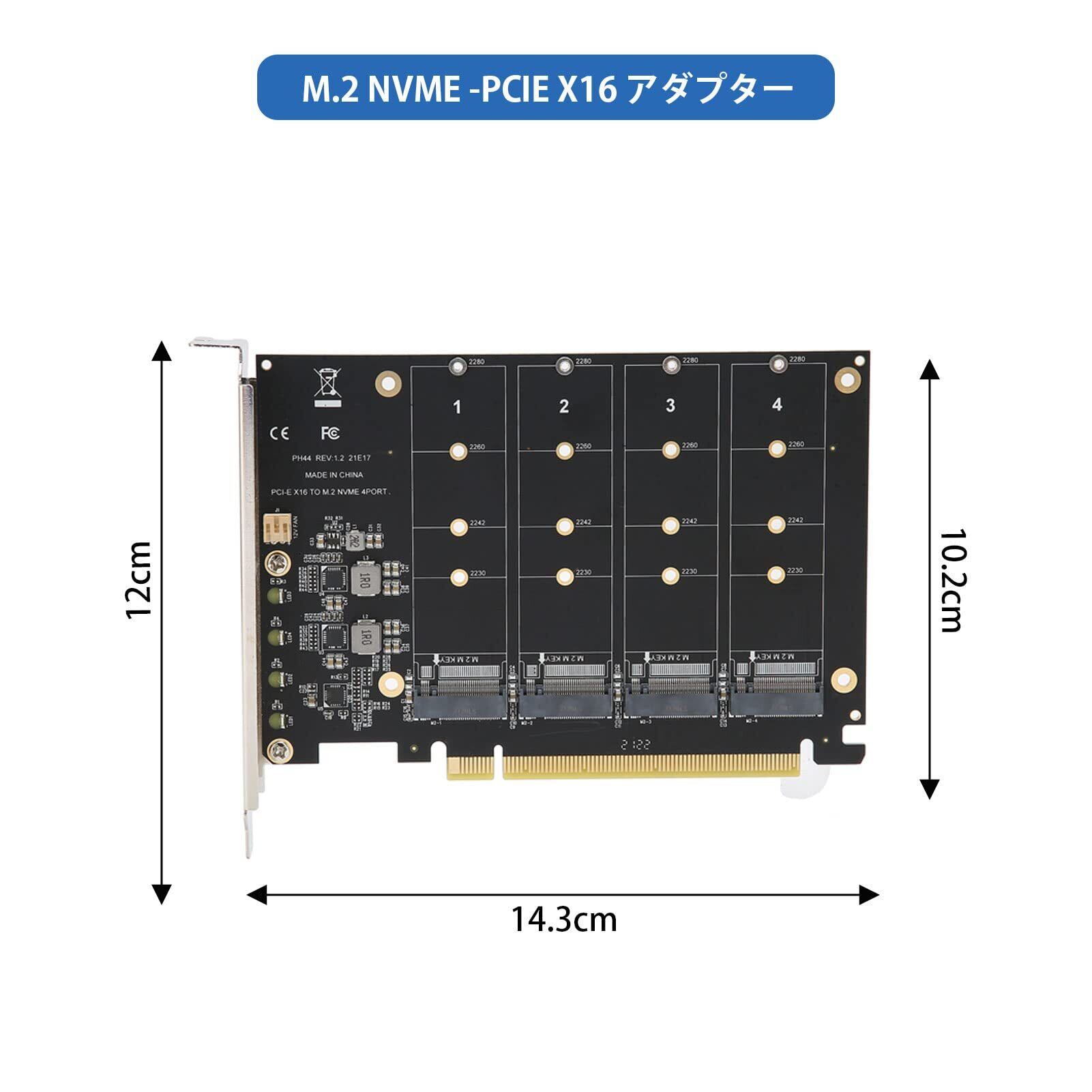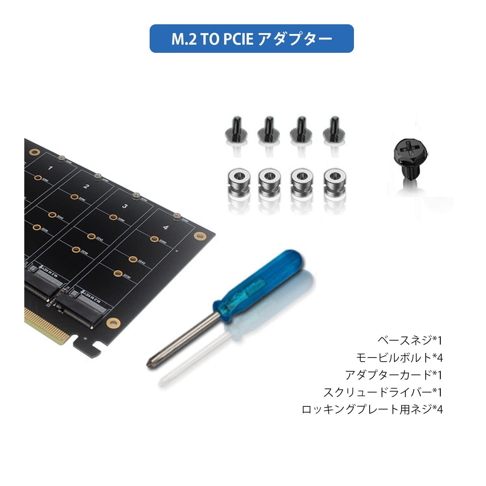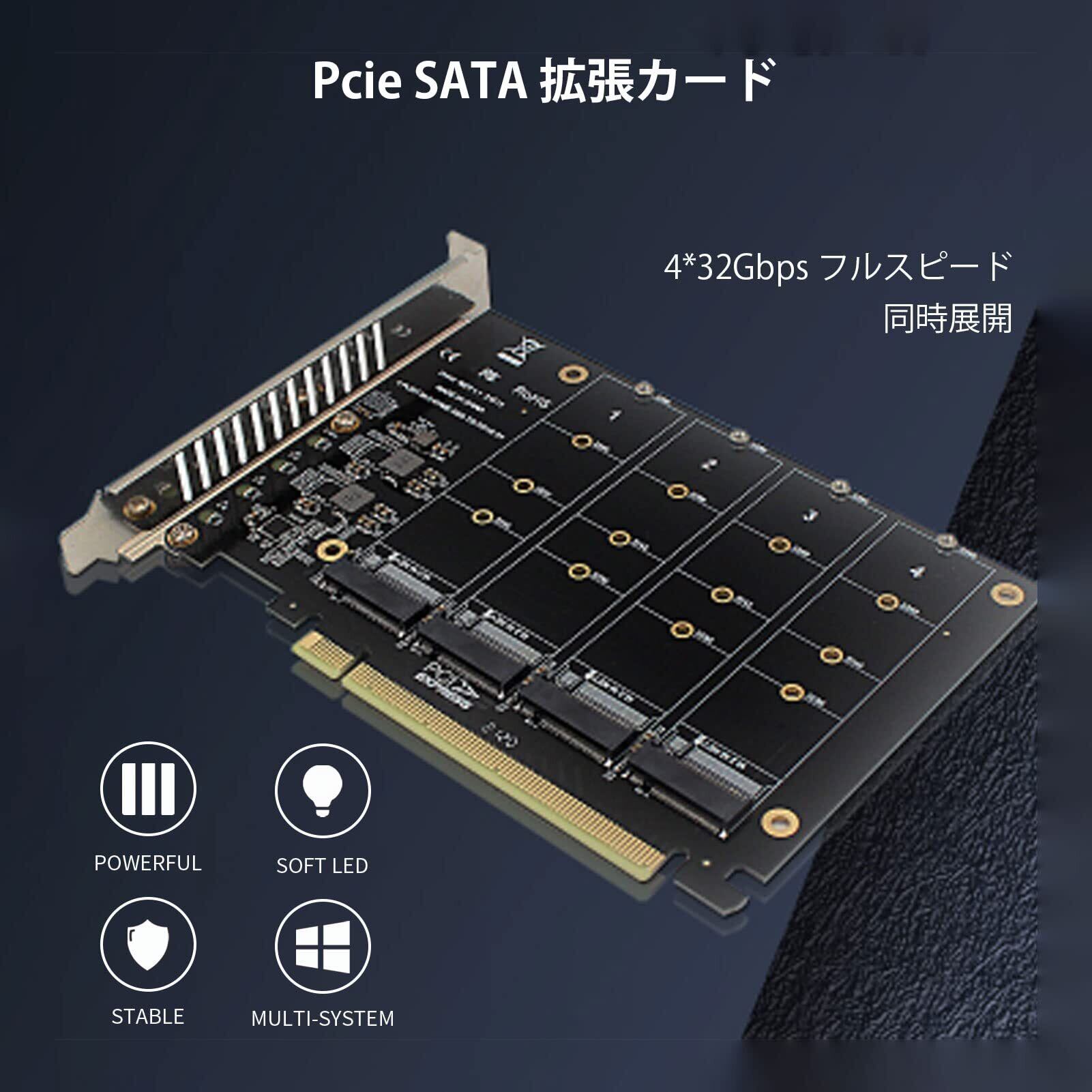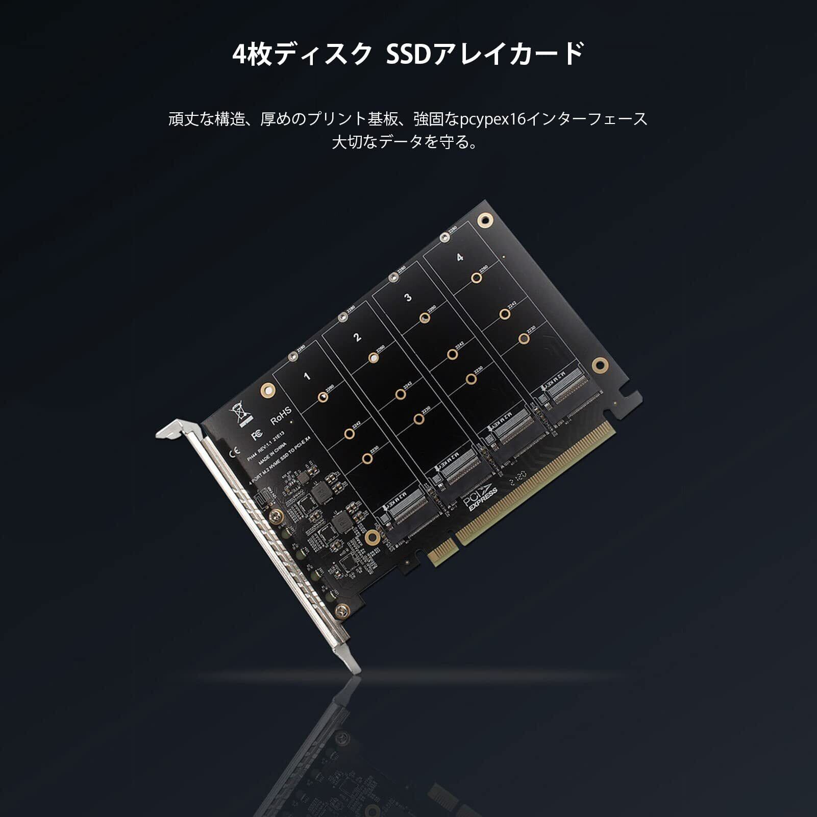 Gugxiom 4ポート M.2 NVME - PCIe X16アダプタ 4×32Gbps NVME M.2 - SATAアダプター、ssd 3.5インチ変換マウンター PCIE 3.0 PCIE4.0サポート、PCIE M.2 変換、sata 増設 PCIE X16からM.2 NVMEアダプターカード拡張カード、2230 2242 2260 2280、Win8 Win10システム対応(ph44)