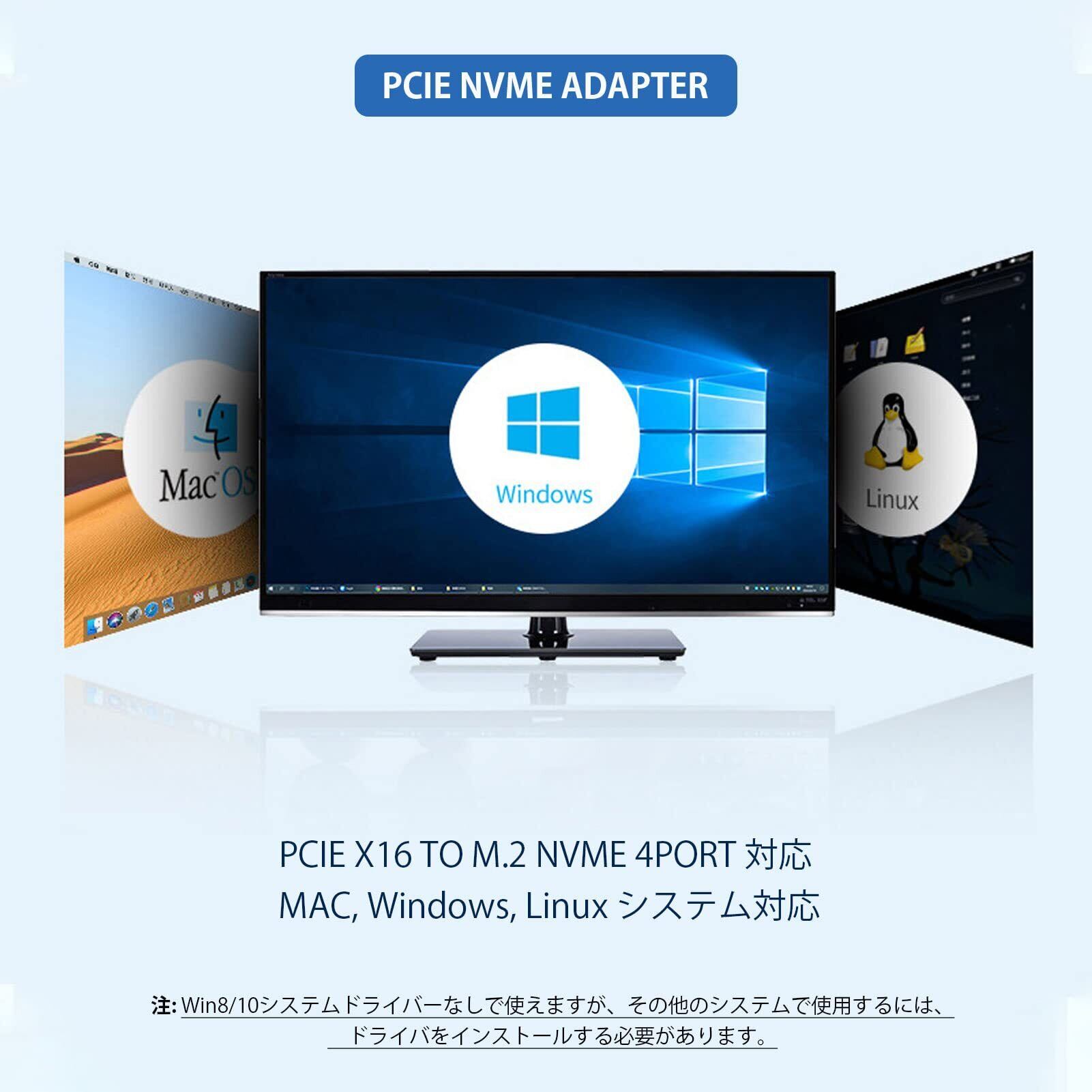互換性:4 M.2 NVME SSD (Mキー) から PCIE 3.0/4.0 X16 RAIDカード、/Mac OS/Linux用のマルチシステム互換。 win8 Win10システムフリードライブ。